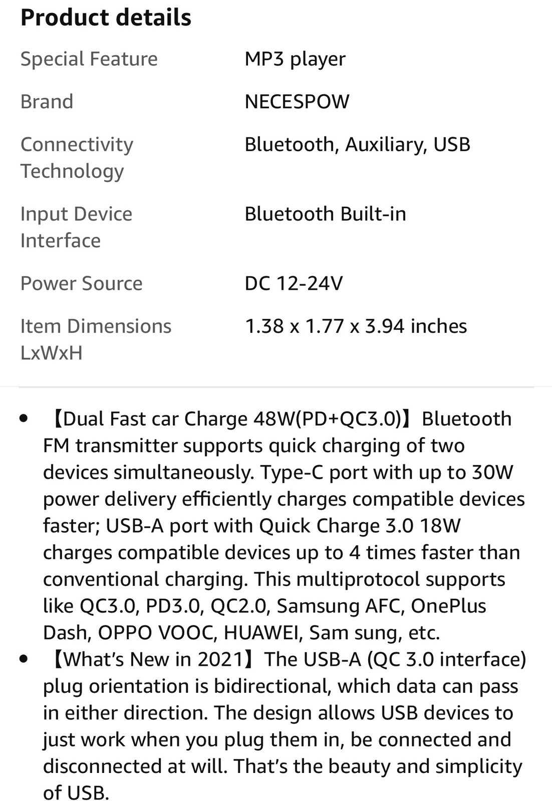 Bluetooth 5.0 Car Wireless FM Transmitter Adapter 2 USB PD Charger AUX