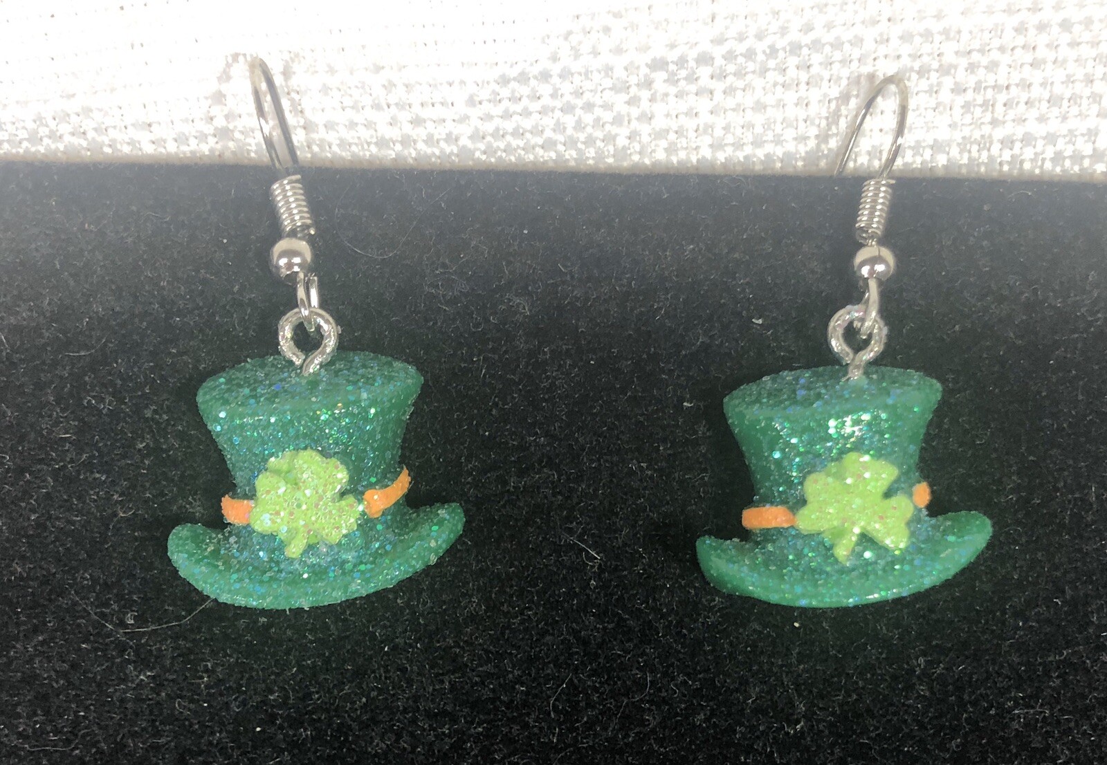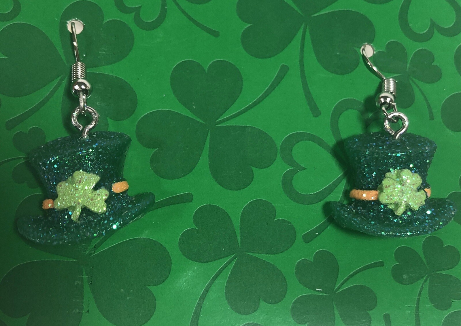 Lucky Leprechaun's Hat St. Patrick s Day Shamrock Dangle Drop Earrings Glitter