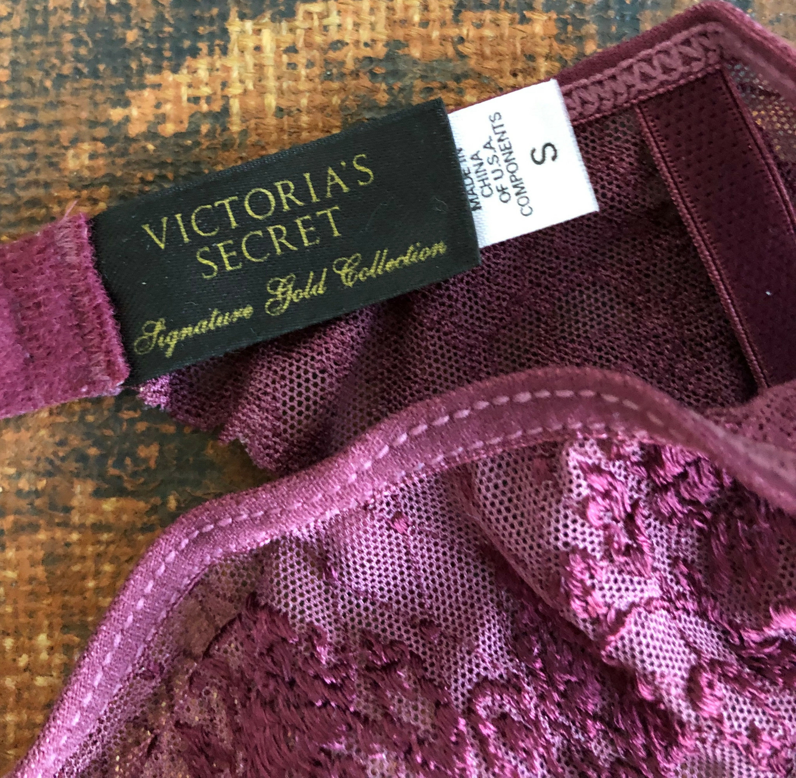 как выглядит VTG NOS VICTORIAS SECRET NWT GARTER BELT MAGENTA RED PINK LACE MESH FLORAL S фото