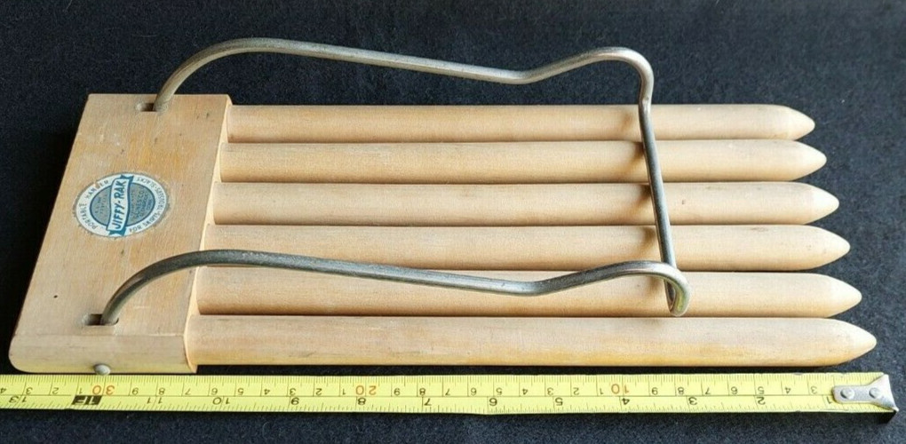 как выглядит PORTABLE HANGER. WOOD/ METAL, JIFFY-RAK. GLINES CO. GLEN BROOK, CONN. USA фото