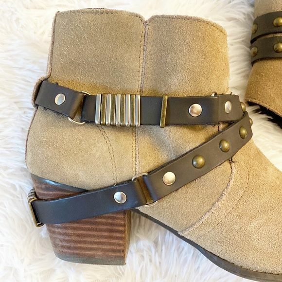 как выглядит DOLCE VITA Anthropologie Taupe Harness Suede Heel Ankle Boots women s 9.5 фото