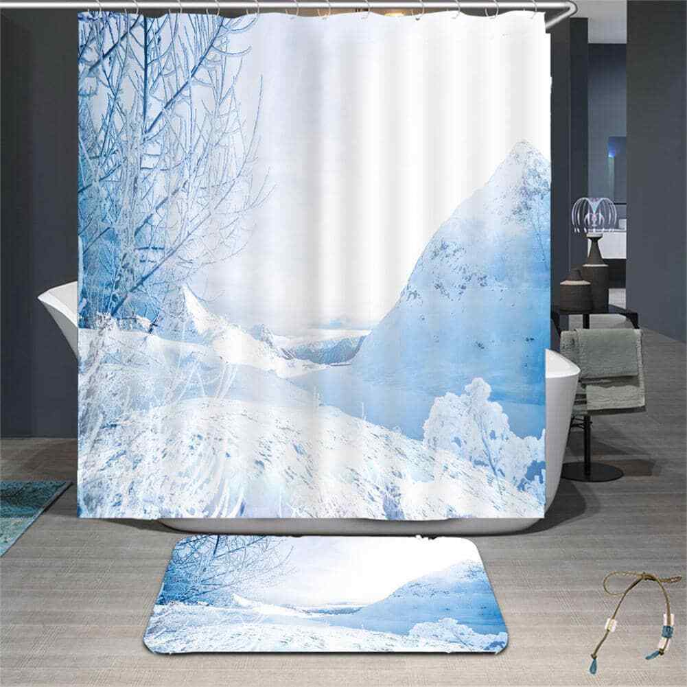 Snow And Mountains 3D Shower Curtain Waterproof Fabric Bathroom Decoration