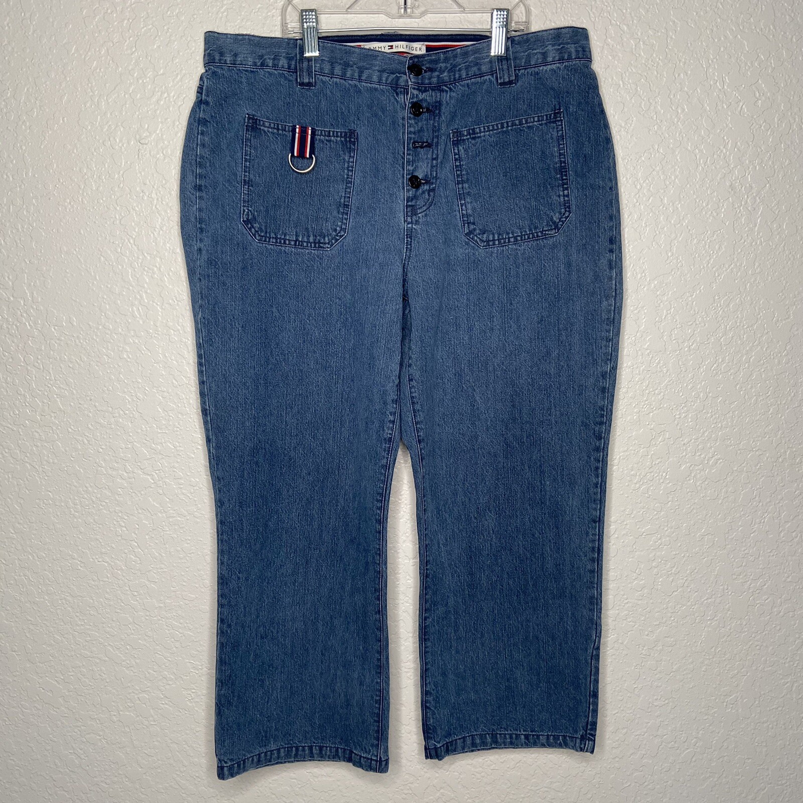 TOMMY HILFIGER Vintage Cropped Boyfriend Denim Jeans Women s Sz 14 Pants Button