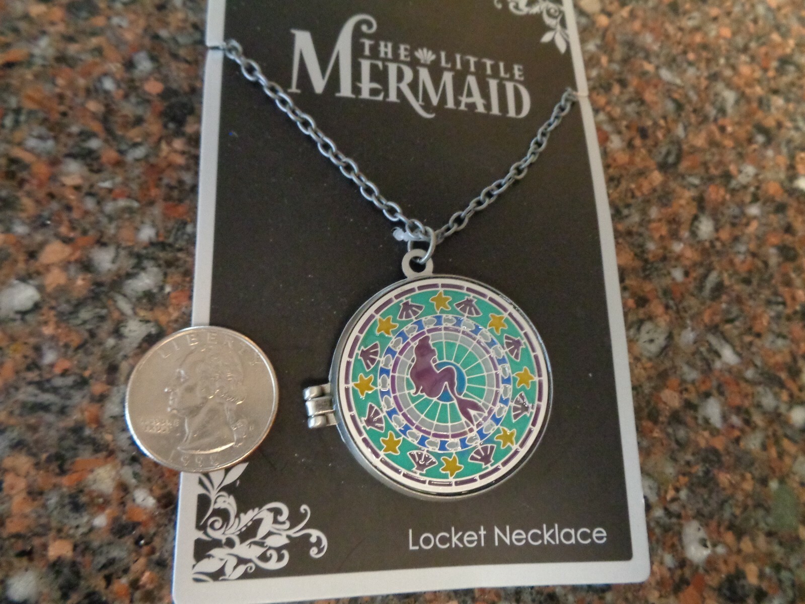 как выглядит Ariel Little Mermaid Stainglass Locket Necklace Brand New Authentic Disney фото