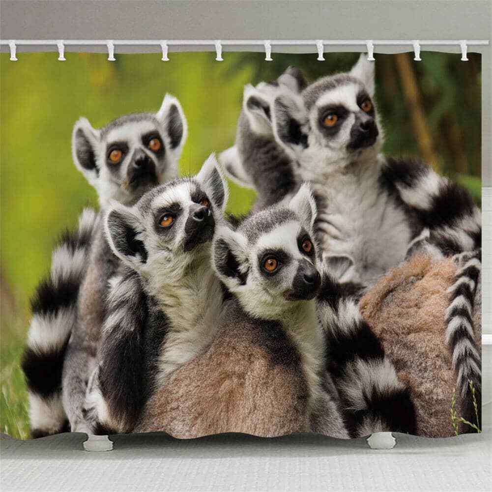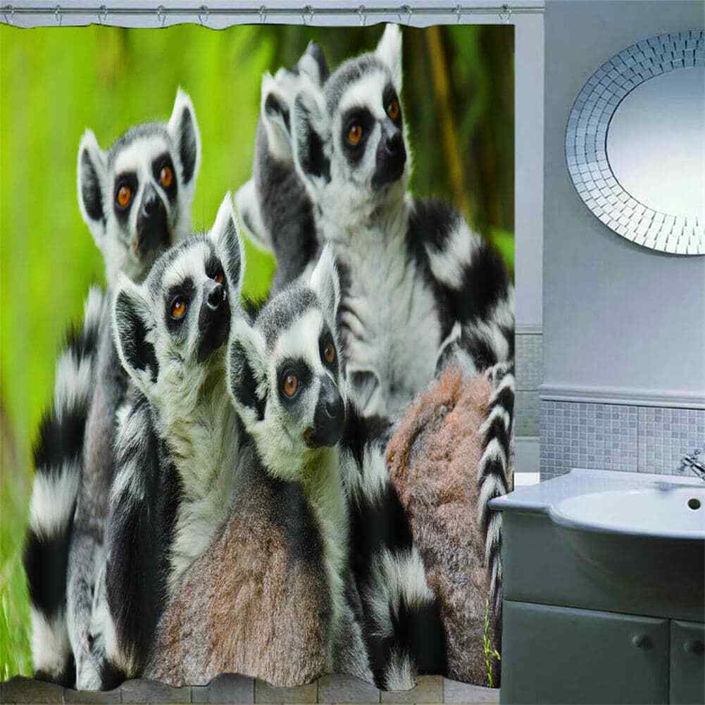 Cute Ring-Tailed Lemurs 3D Shower Curtain Waterproof Fabric Bathroom Decoration