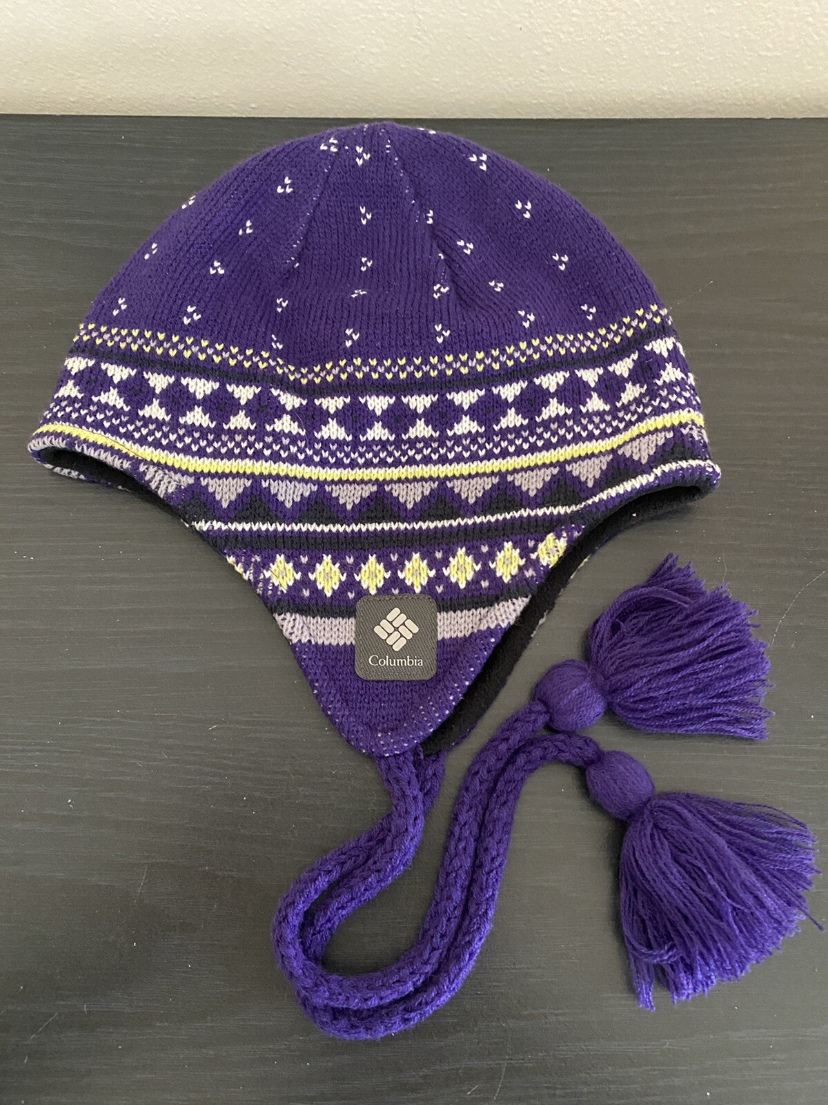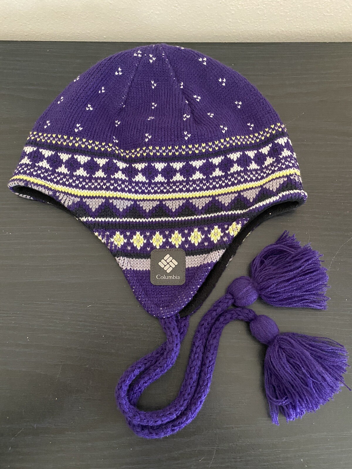 как выглядит Columbia Sportswear Company Purple and Gold Knit Hat Cat Beanie Unisex O/S фото