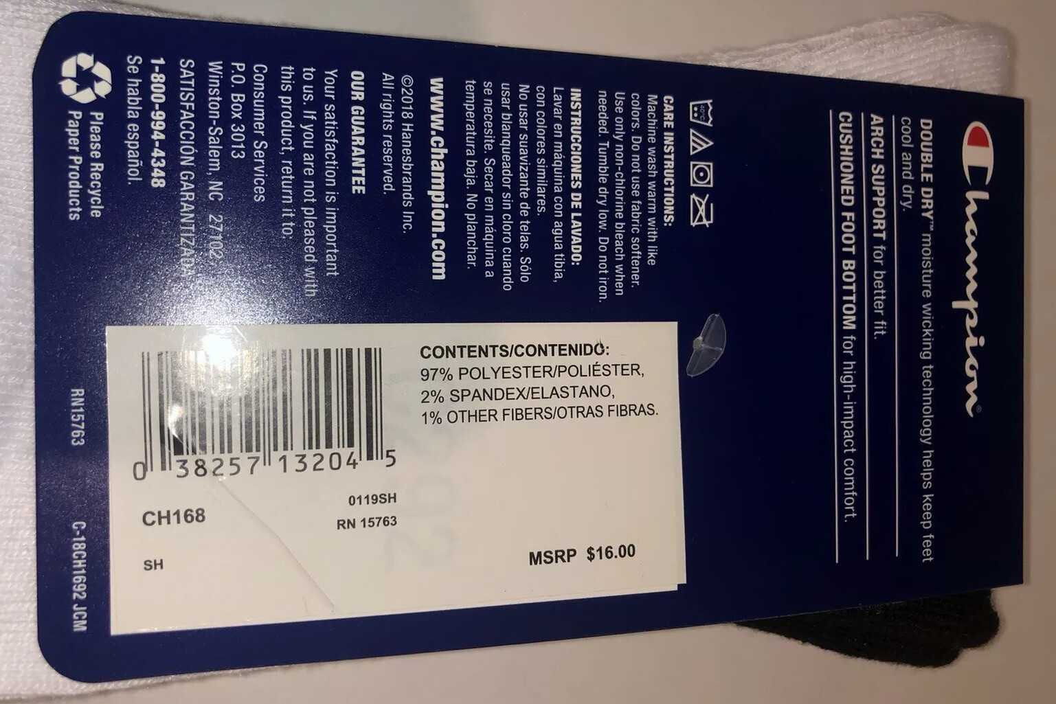 как выглядит Champion Crew Sock 2 Pair Mens 6-12 Black White Red w/ Logo Cushion New 16 фото