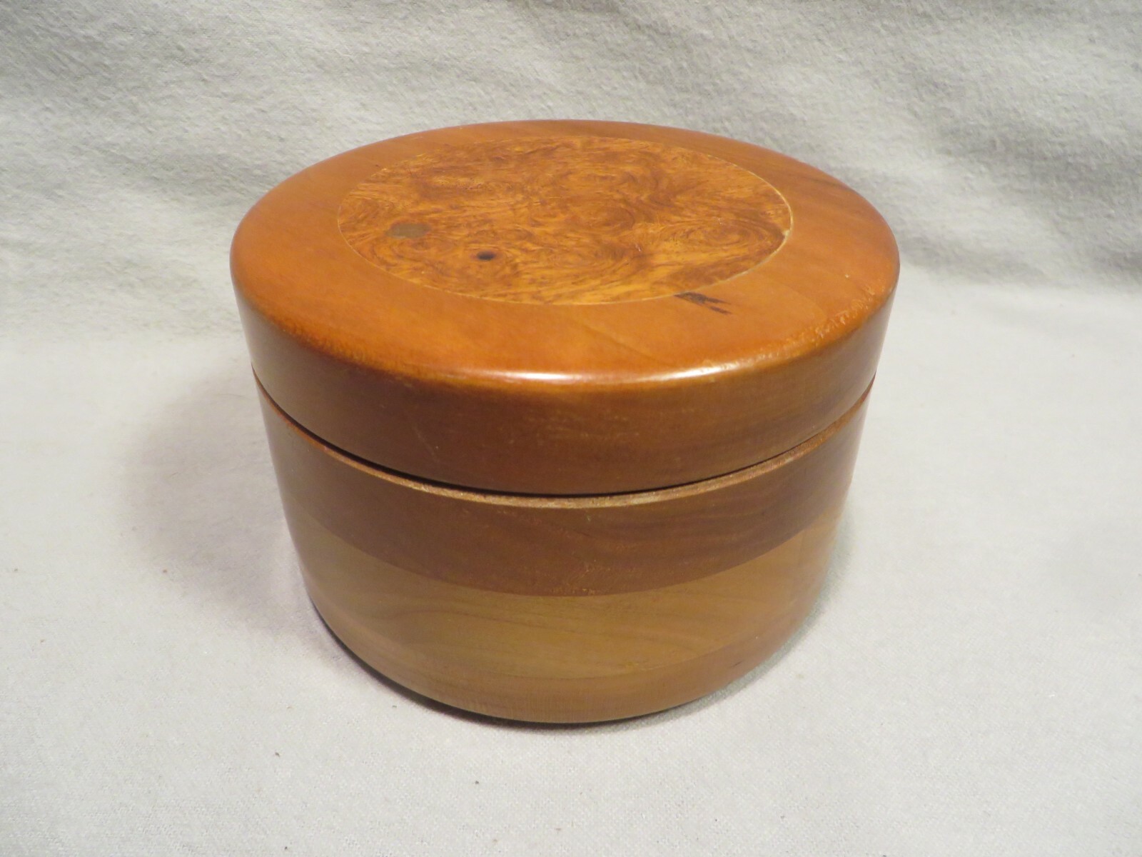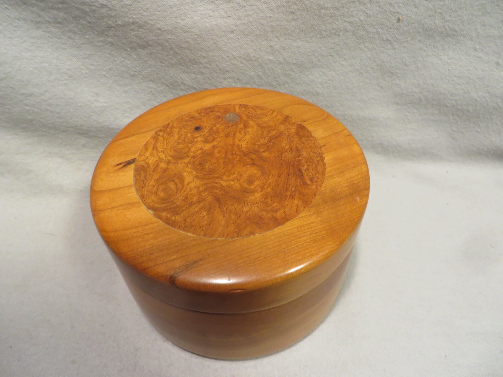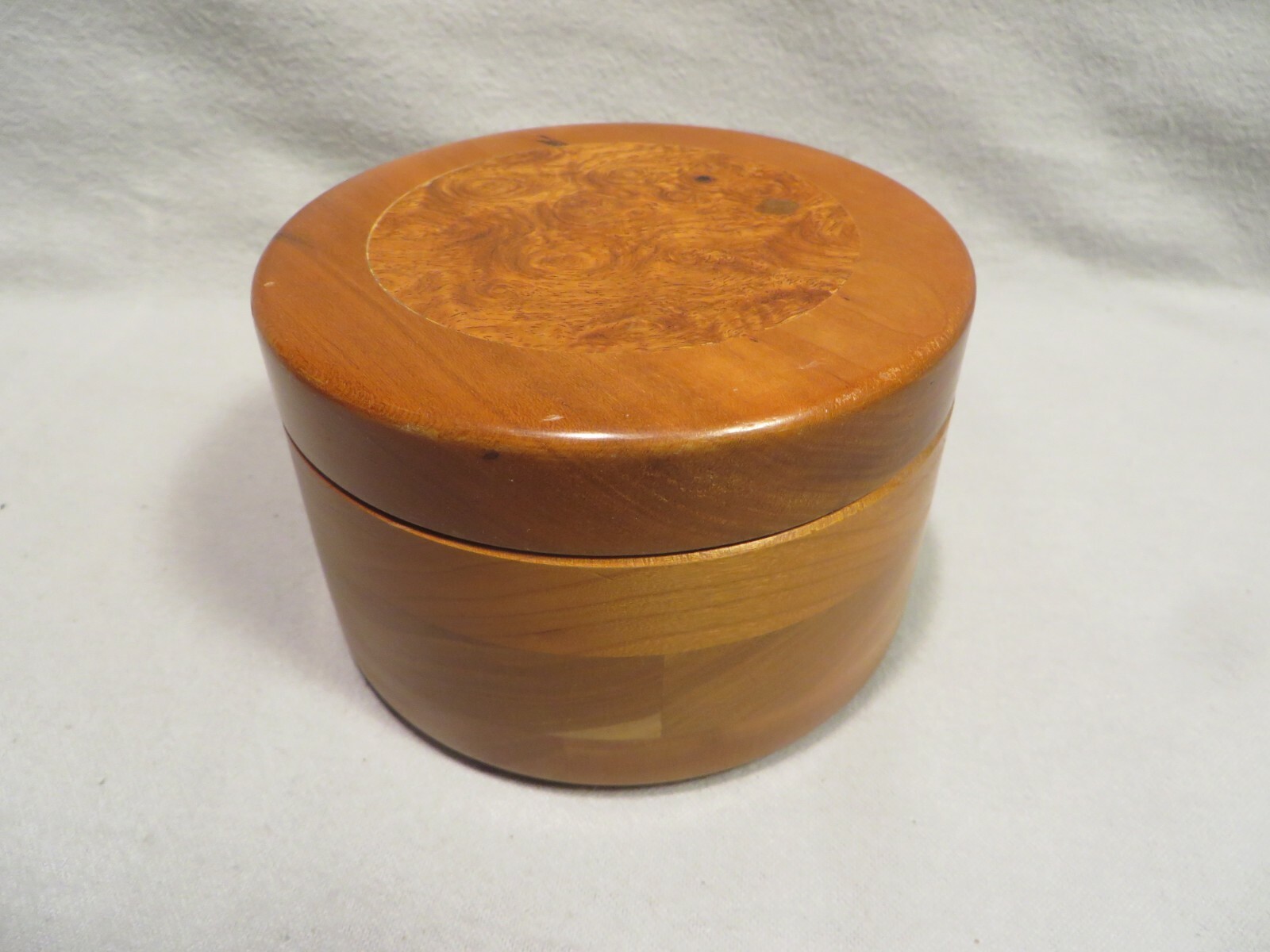 Vintage Hand-Crafted Artist Signed Dated Cherry Wood Round Covered Box