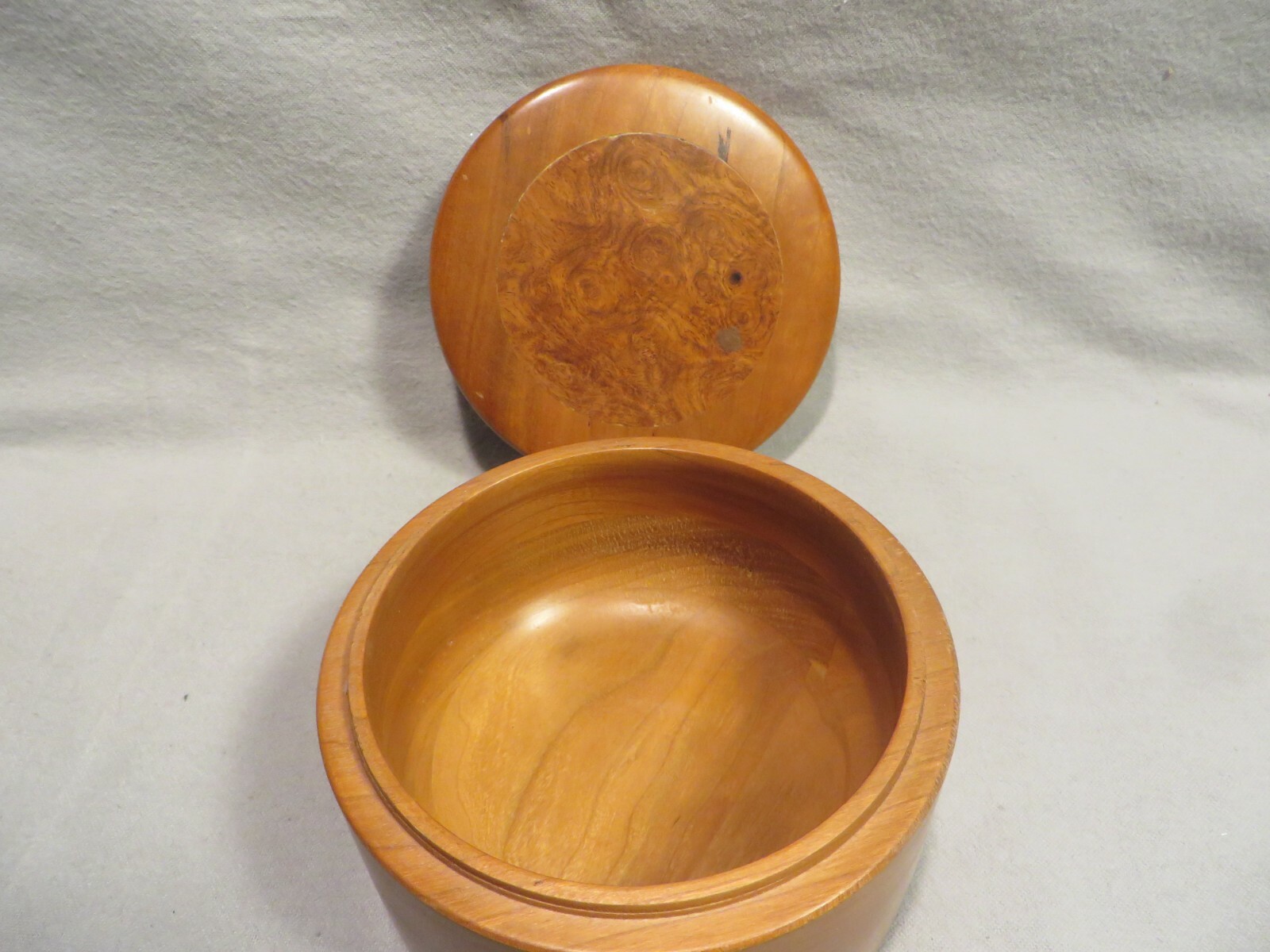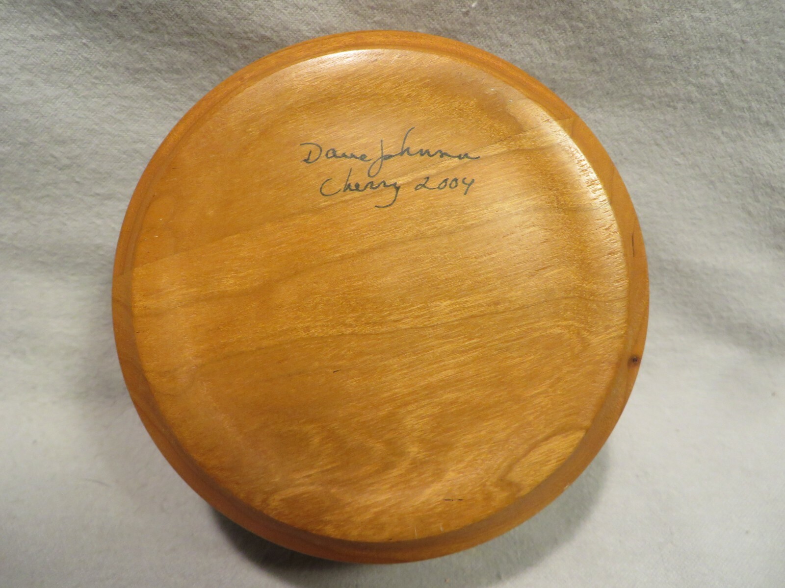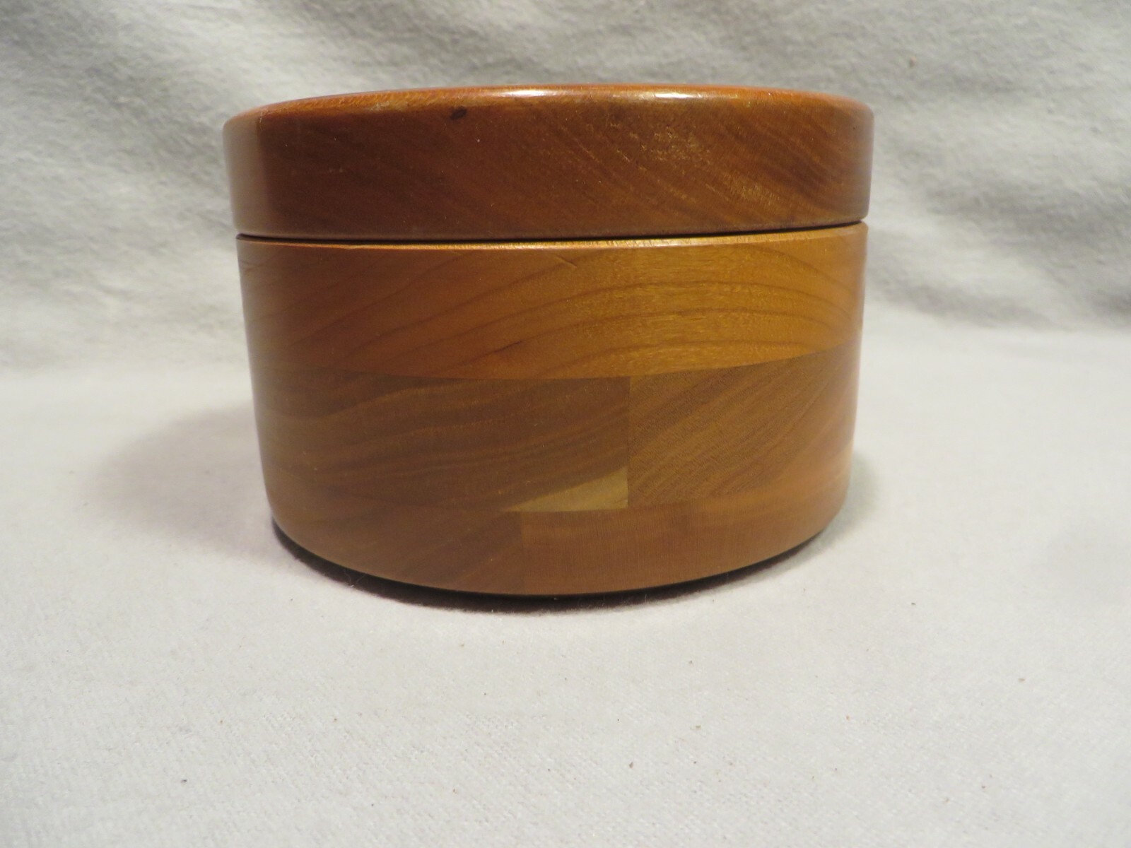 Vintage Hand-Crafted Artist Signed Dated Cherry Wood Round Covered Box
