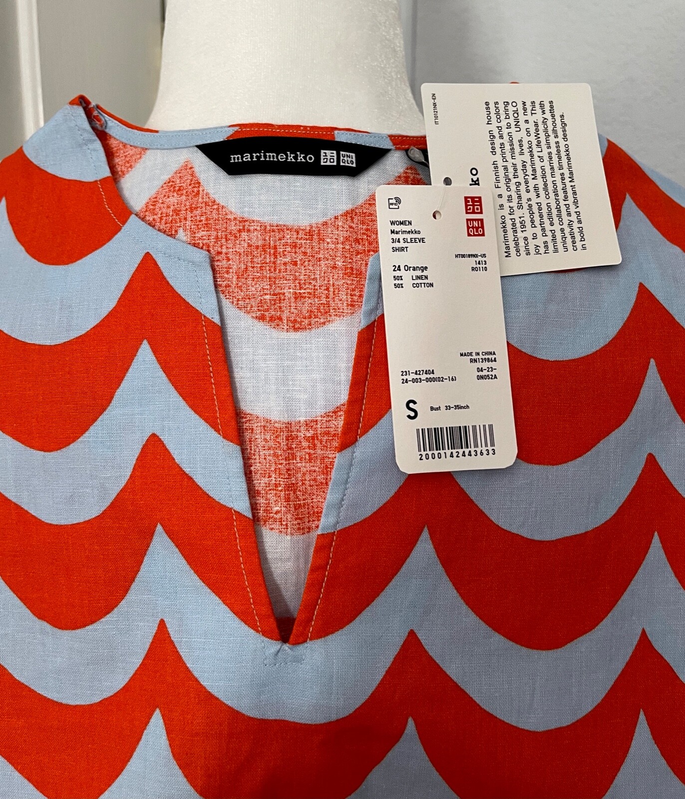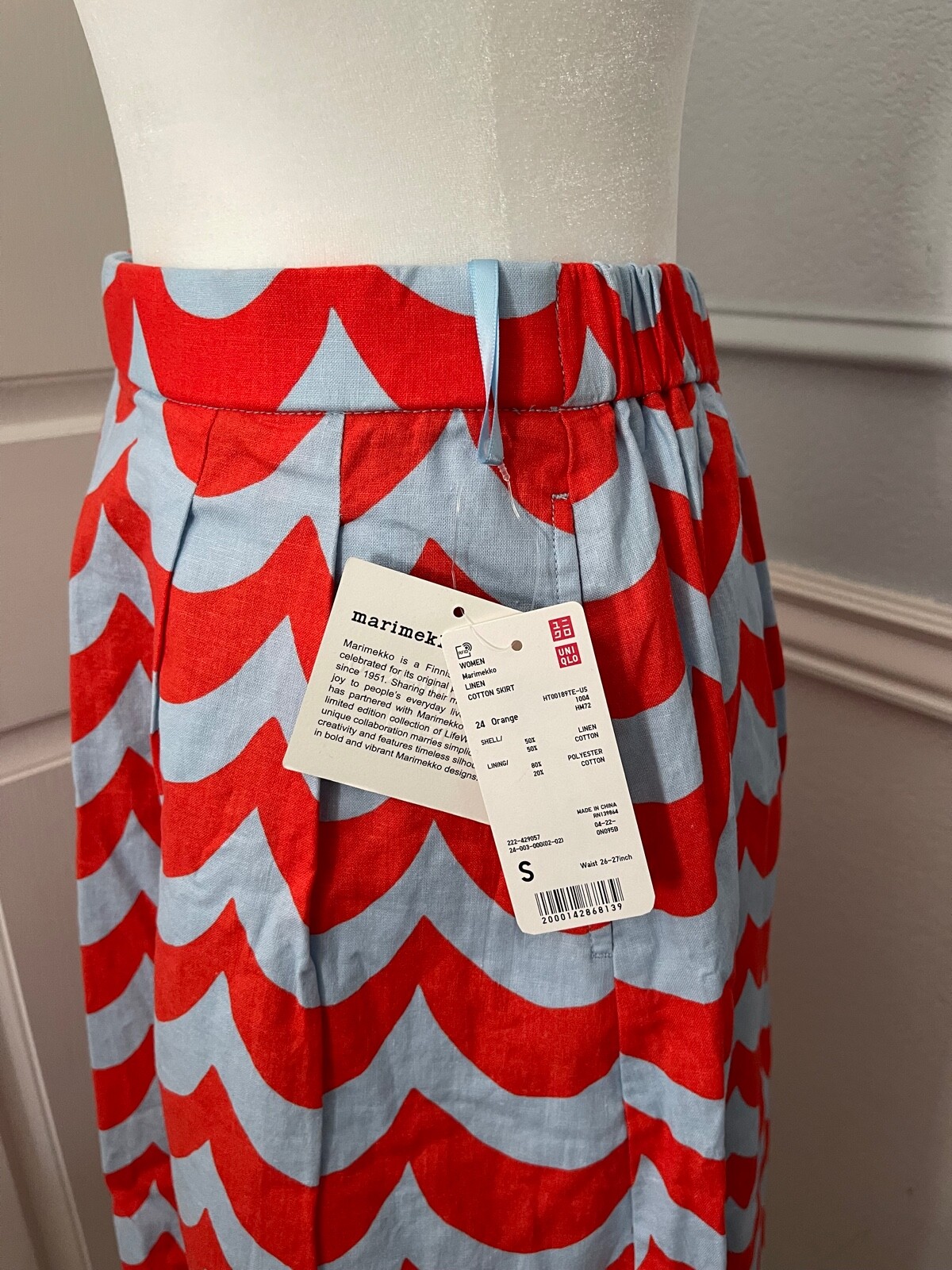 как выглядит Uniqlo x Marimekko Womens Orange Linen Cotton 3/4 Sleeve Shirt and Skirt Size S фото