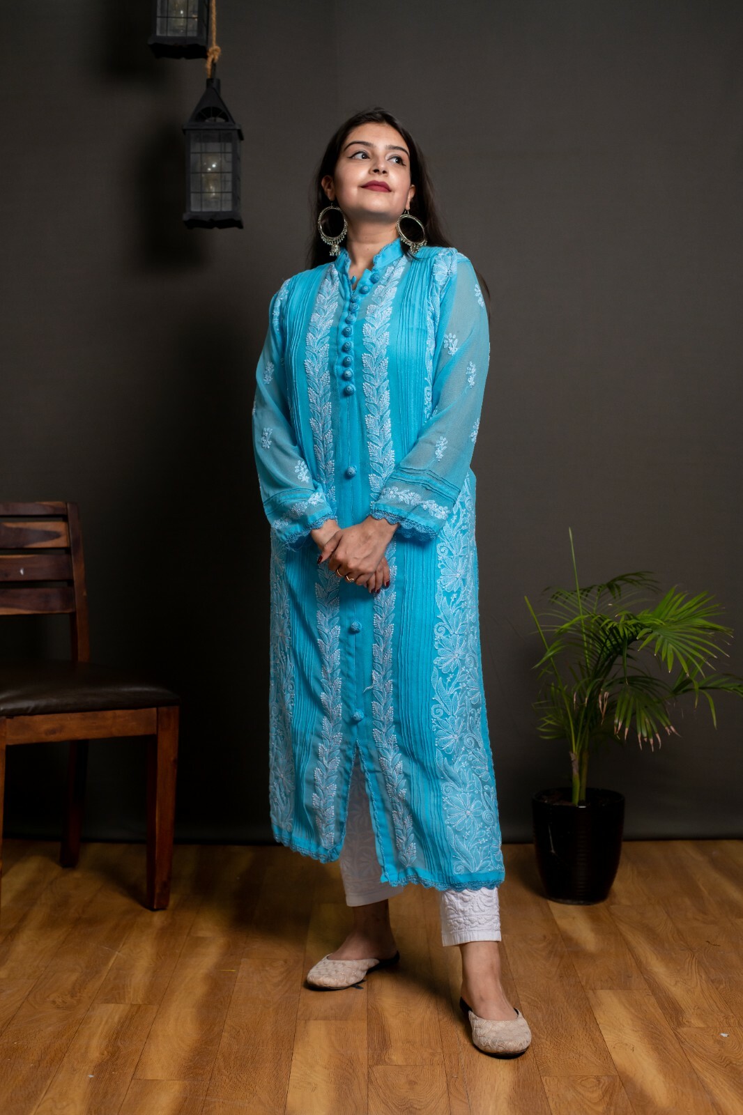 Indian Pakistani Ethnic Wear Lacknawi Chikankari on Georgette Chikan Work