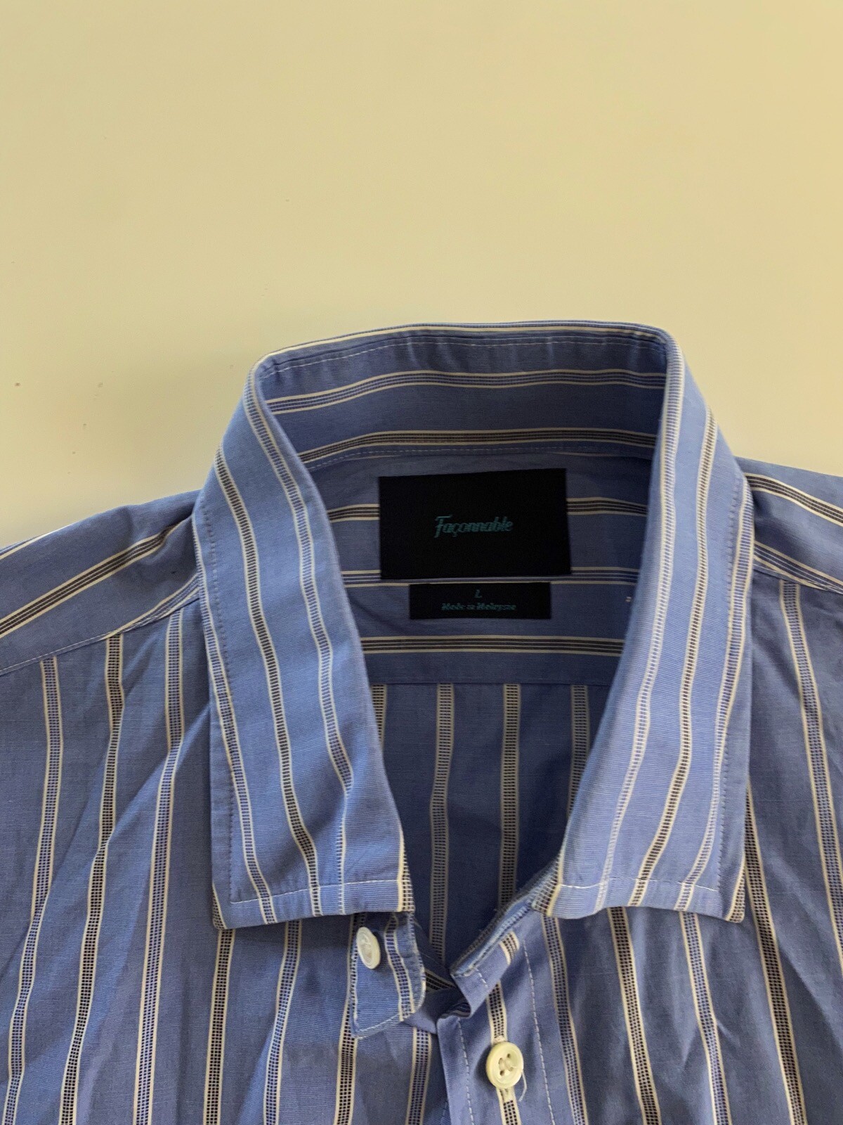 Faconnable Blue Stripe Ctn LONG SLEEVE SHIRT Large L 16 x 35/36