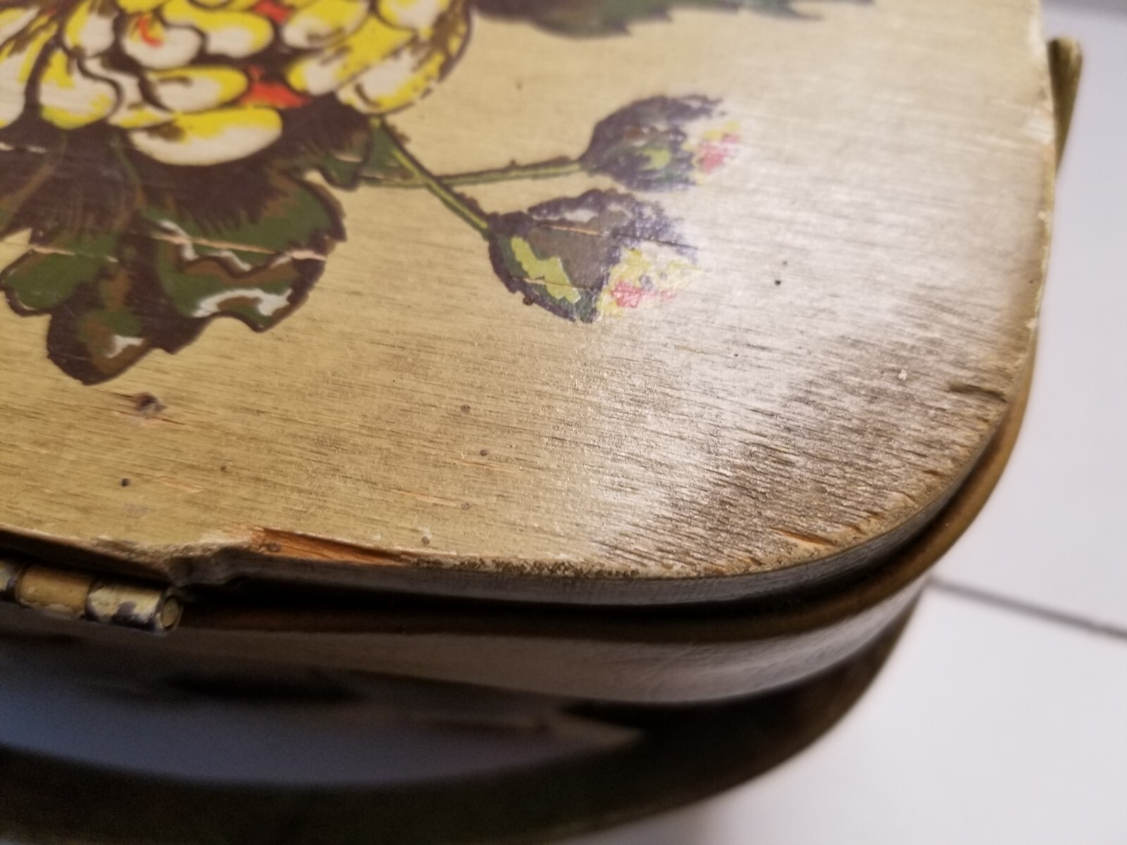 как выглядит Vintage Caro Nan Wood Basket Purse with Flowers on top фото