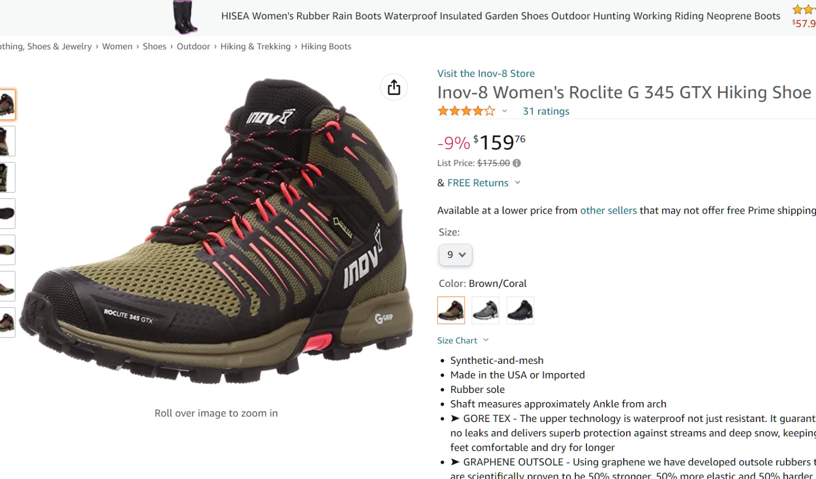 как выглядит Inov-8 Unisex Roclite G 345 GTX Hiking Shoe Athletic Sneakers Olive USW9.5/USM8 фото