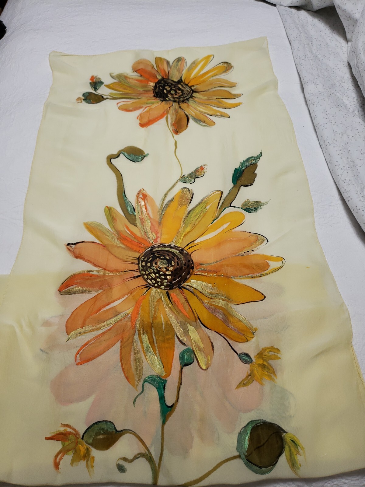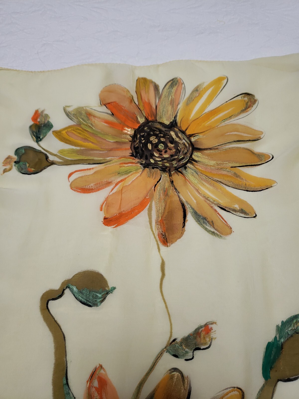 как выглядит VINTAGE Beautiful Painted Sunflower Scarf фото