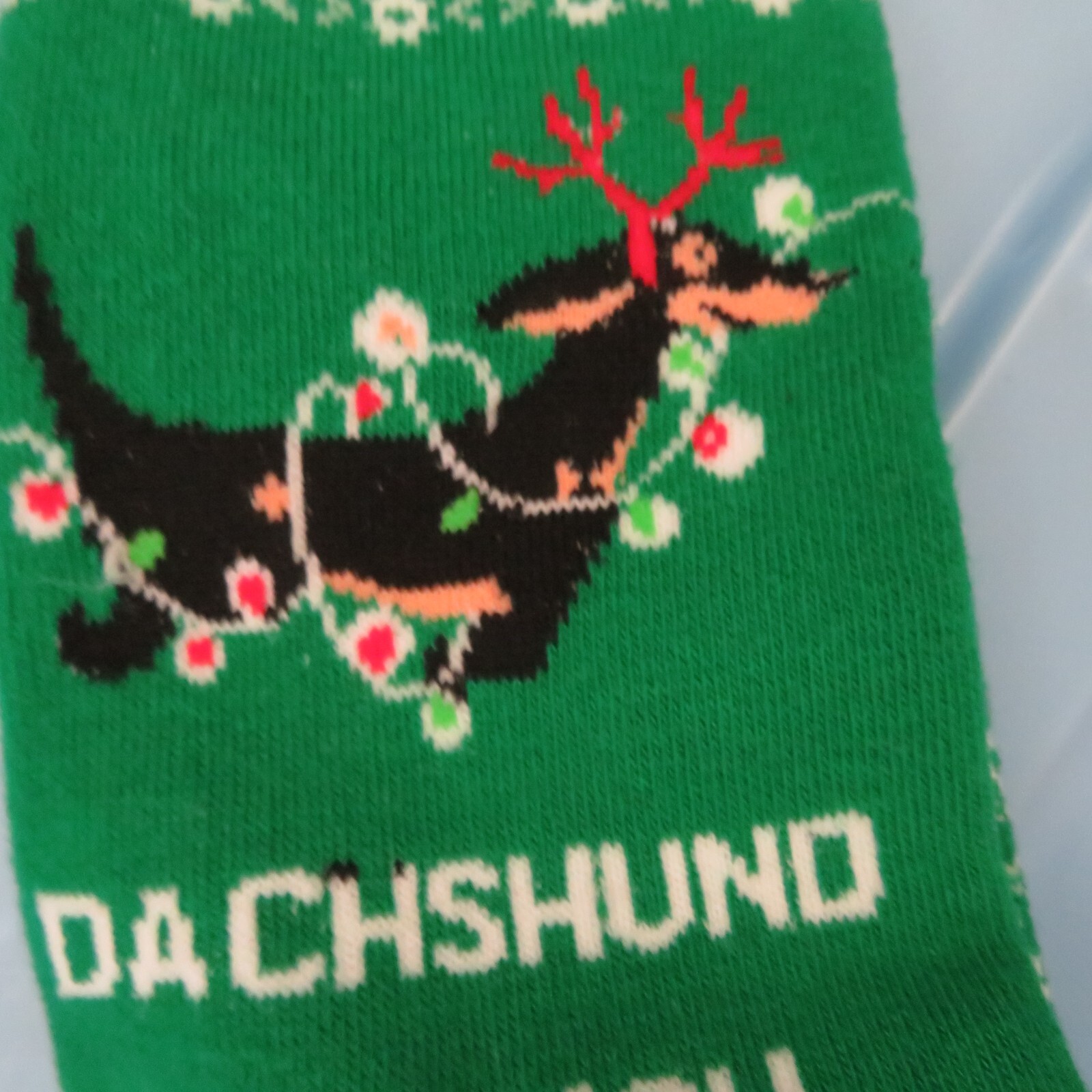 как выглядит NOVELTY Dachshund Through the Snow Mens Christmas Holiday Socks NEW фото