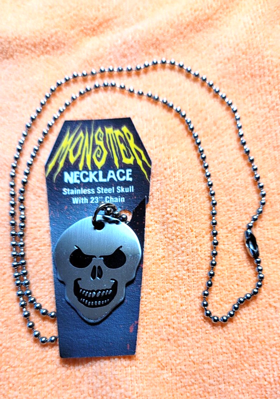 Monster Pick Necklace with 23 Chain, Stainless Steel Skull