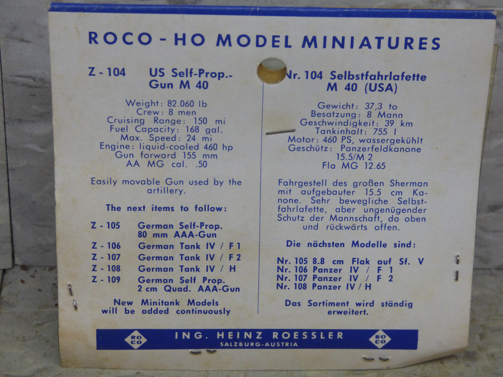 Roco Minitanks NEW 1/87 WWII US M-40 155mm Self Propelled Howitzer Lot 5854K