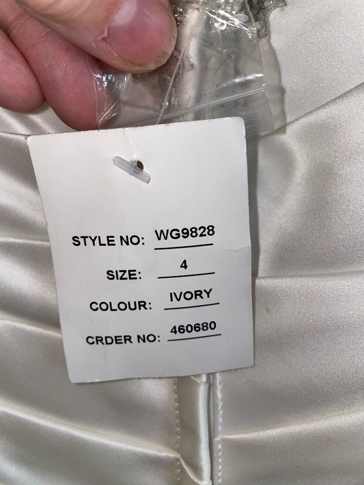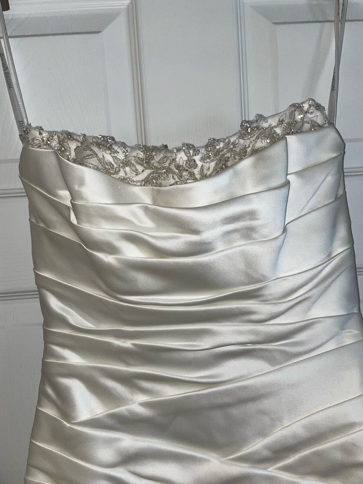 как выглядит NWT Davids Bridal Ivory Wedding Gown Strapless Roushed Pick ups Accent beading фото