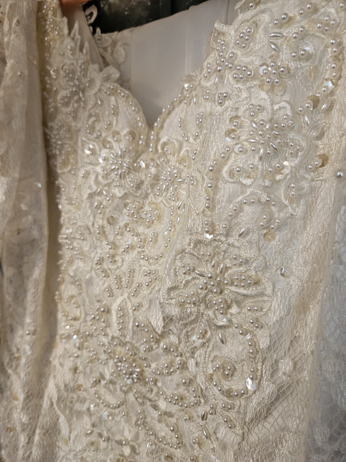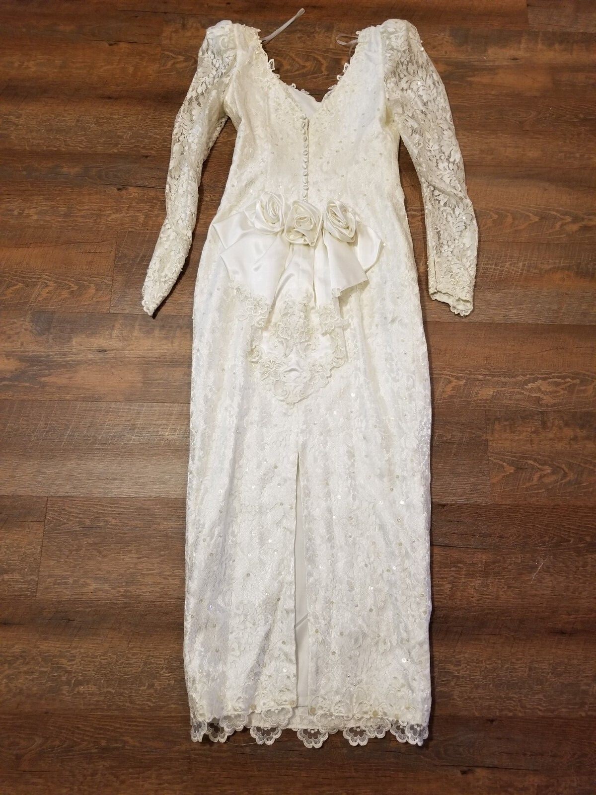 как выглядит Vtg Wedding Dress Gown sz 12 Full Beading Flower Back ZURCION METHOD w/Train фото