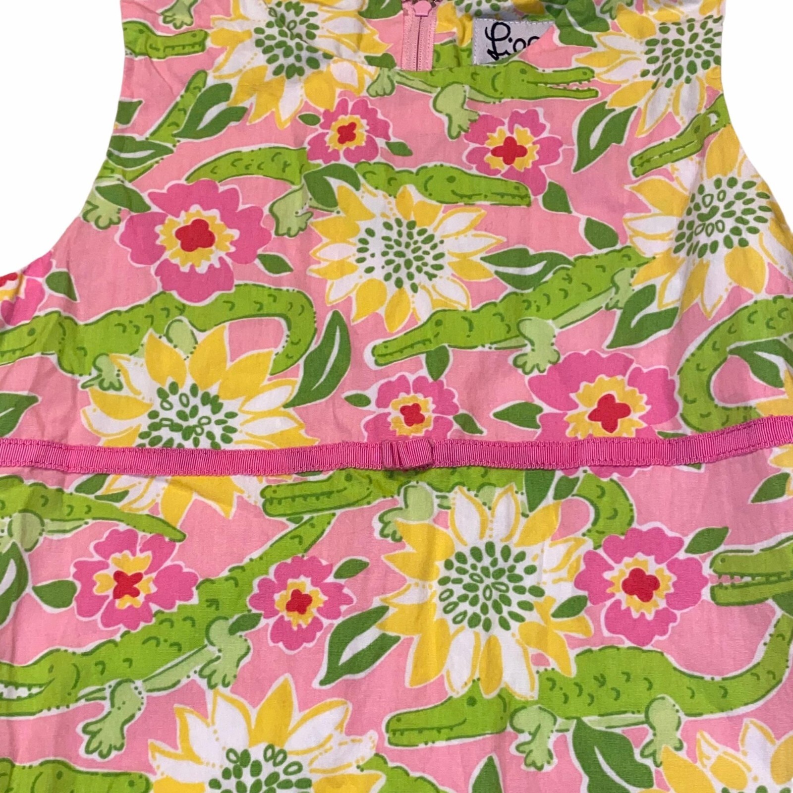 Lilly Pulitzer Vintage White Label Sz 8 Girls Floral Shift Dress with Alligators