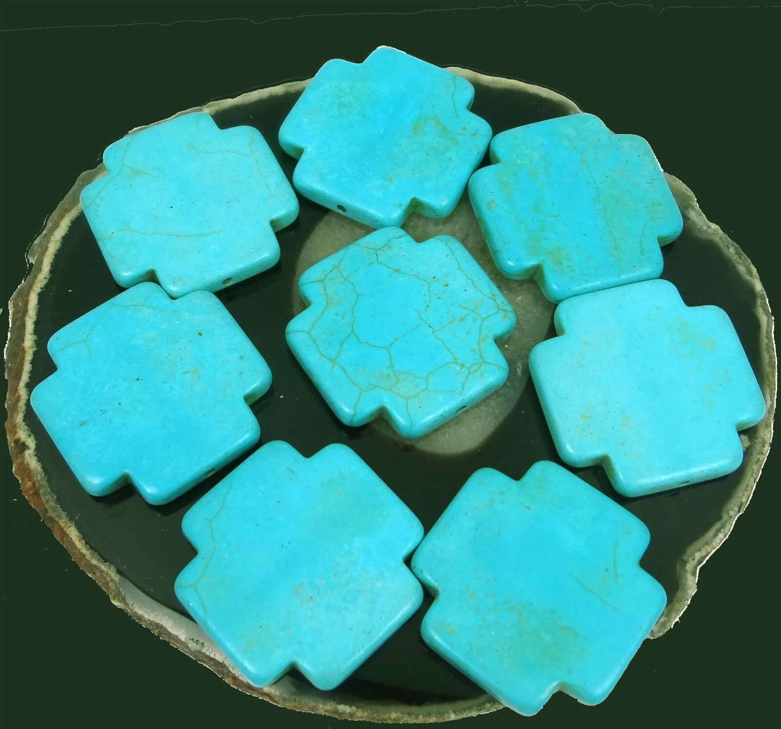 38mm Blue Turquoise Cross Pendant Bead