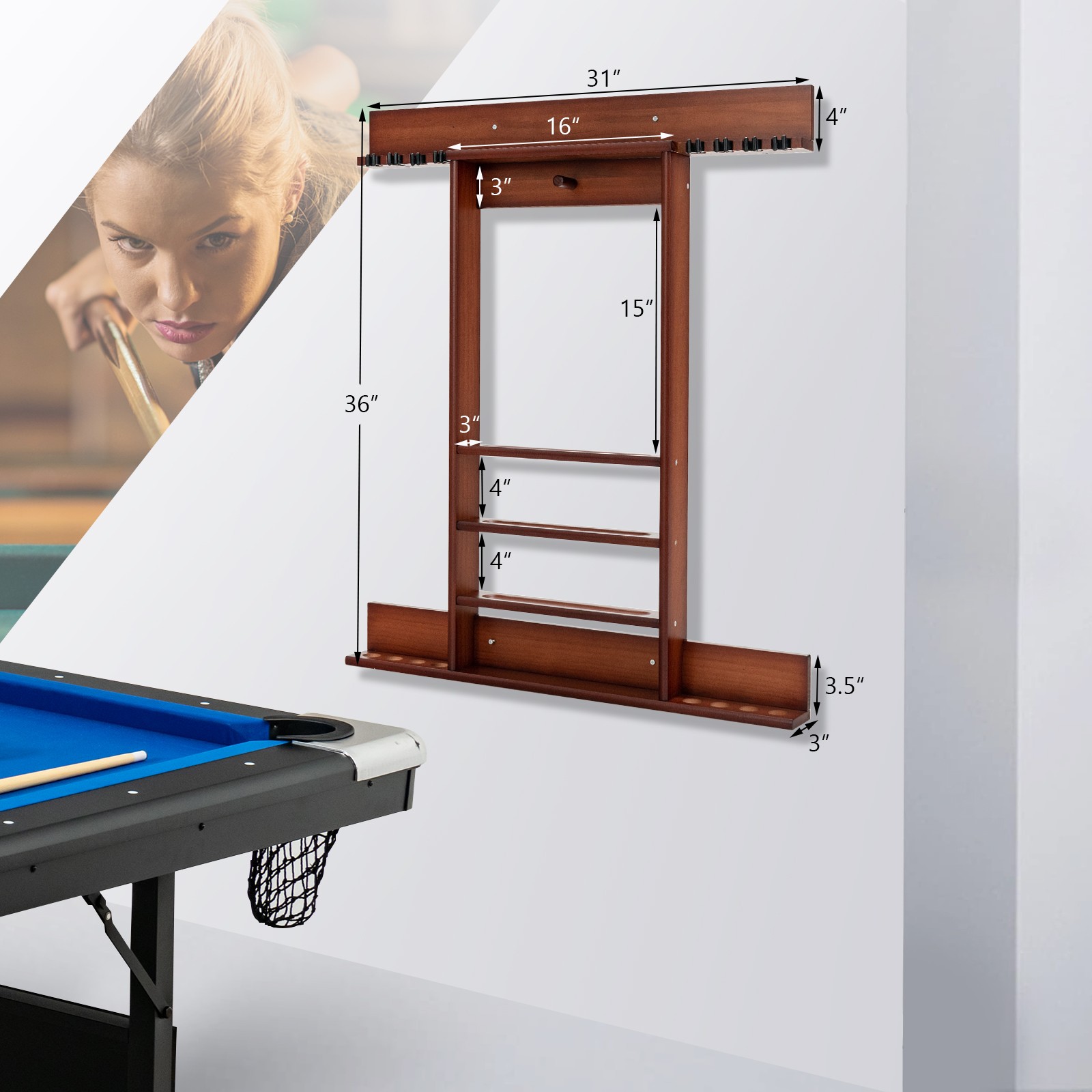 Set Includes: 1 x Billiards Pool Cue Rack, 1 x Instruction