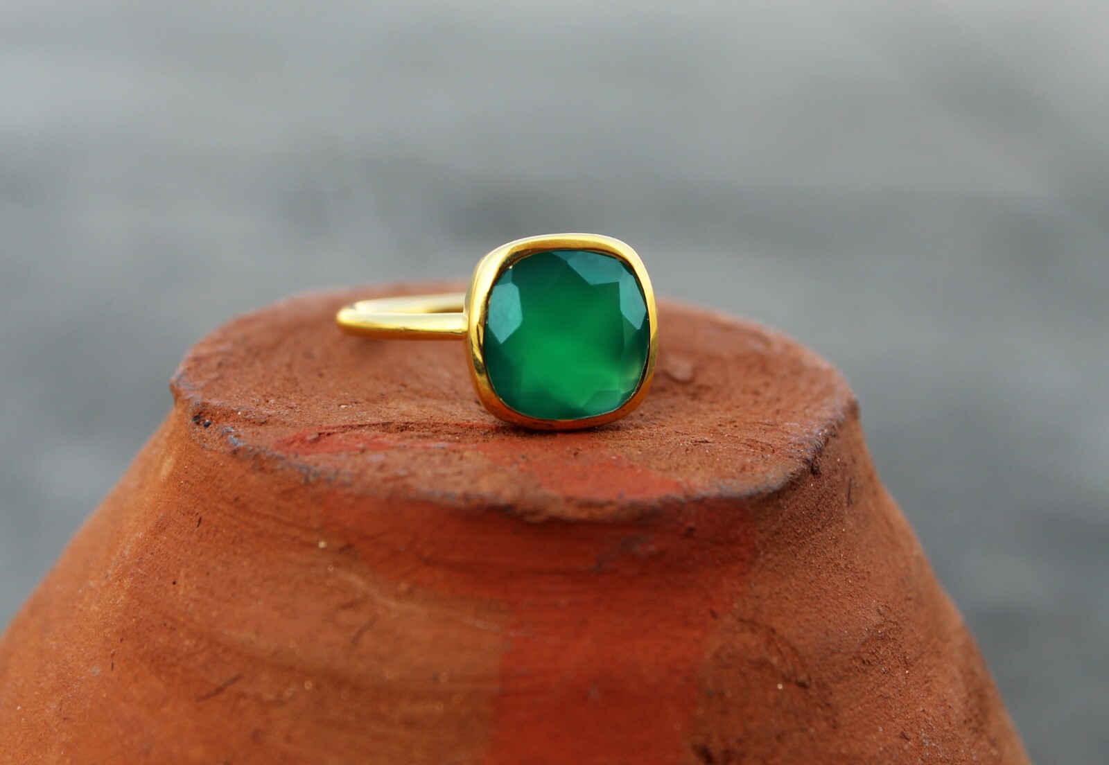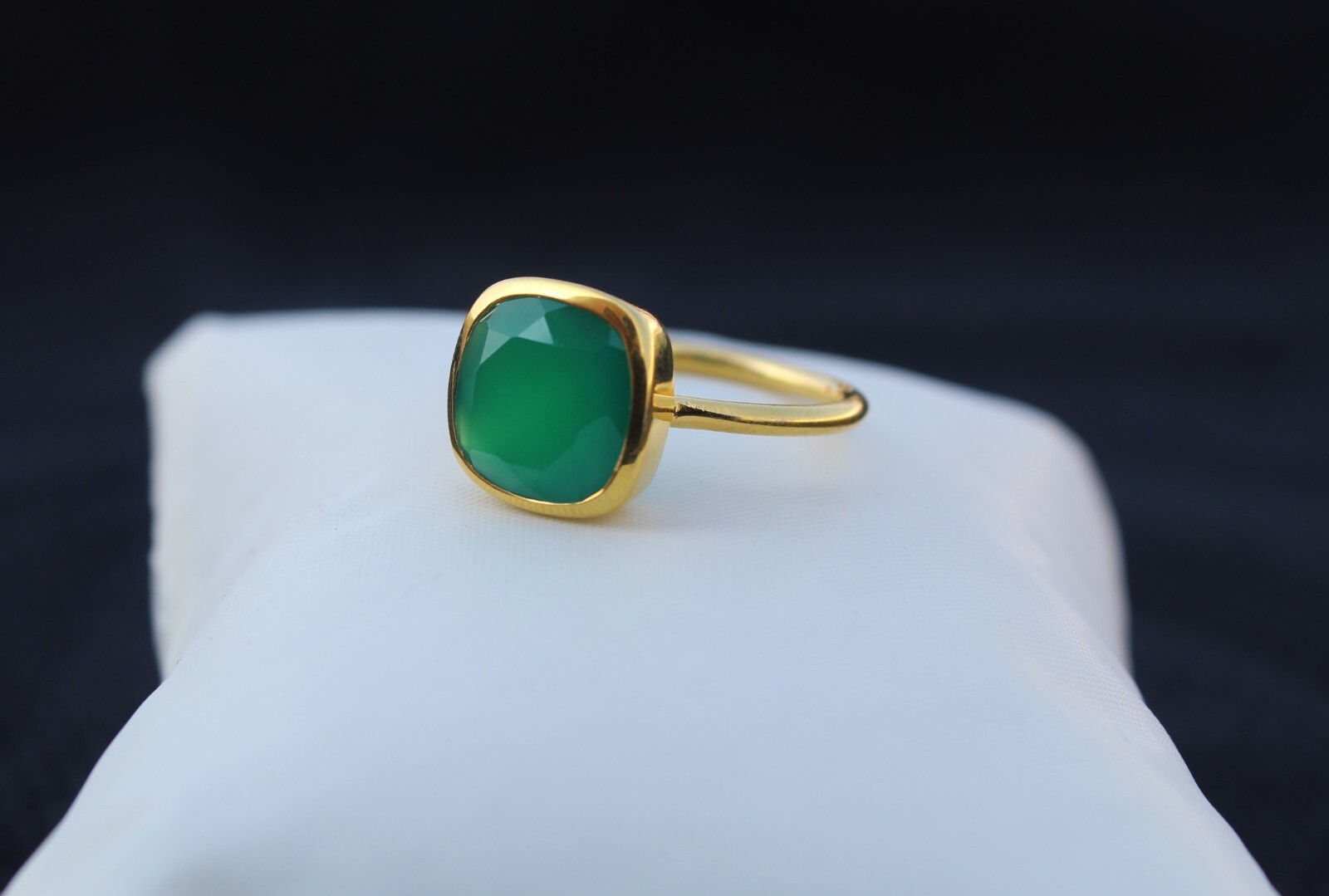 Green Onyx Ring 925 Sterling Silver Cushion Gemstone Handmade Ring For Women