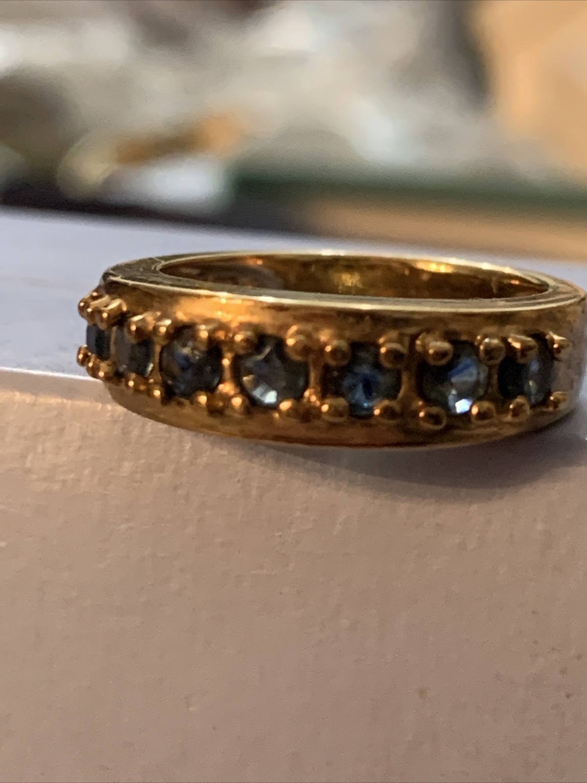 как выглядит VTG DESIGNER 925 STERLING SILVER GOLD VERMEIL NATURAL SAPPHIRE STONE BAND RING фото
