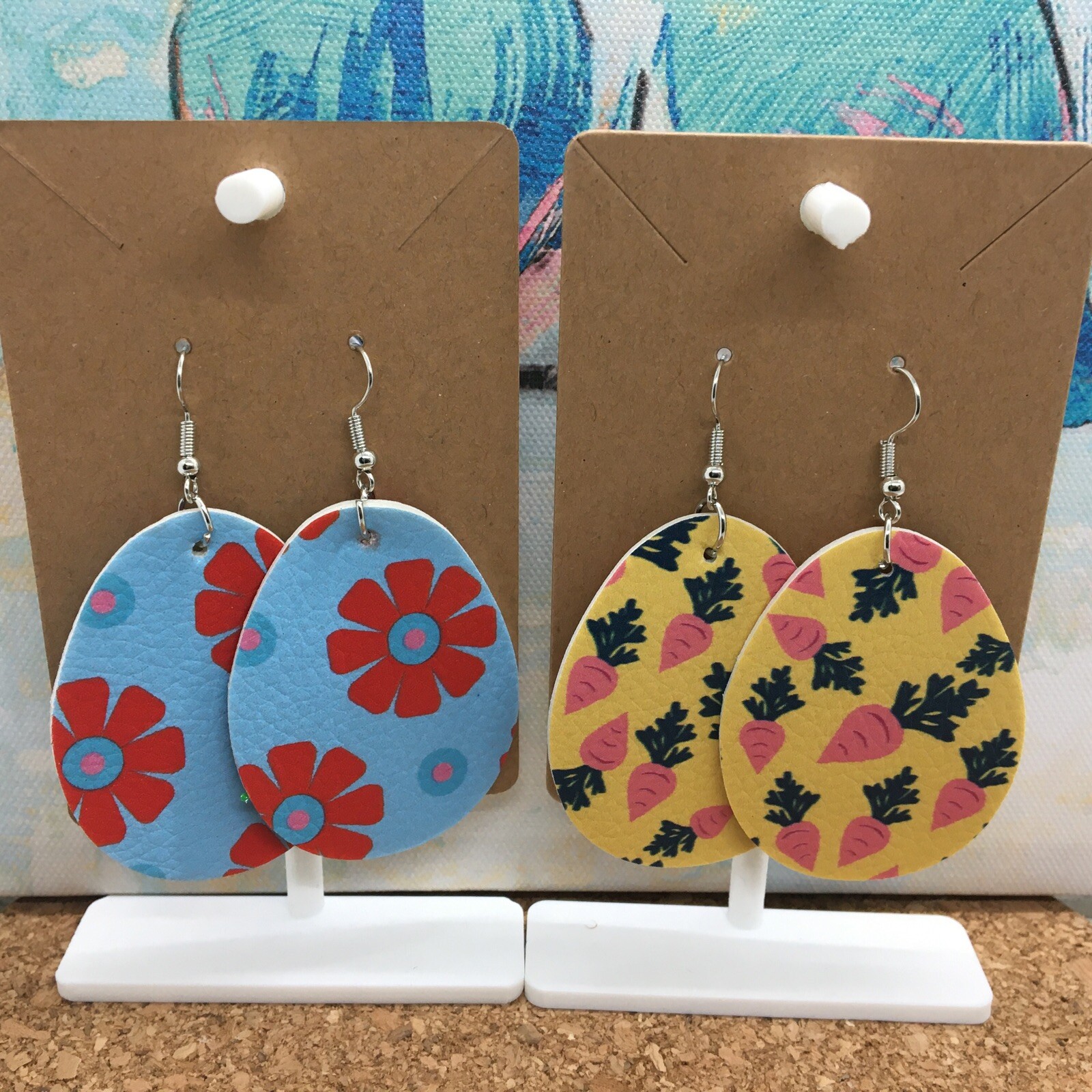 как выглядит 4 PC 3" Teardrop Double-Sided Easter Spring Leather Earring Set New 4279 фото
