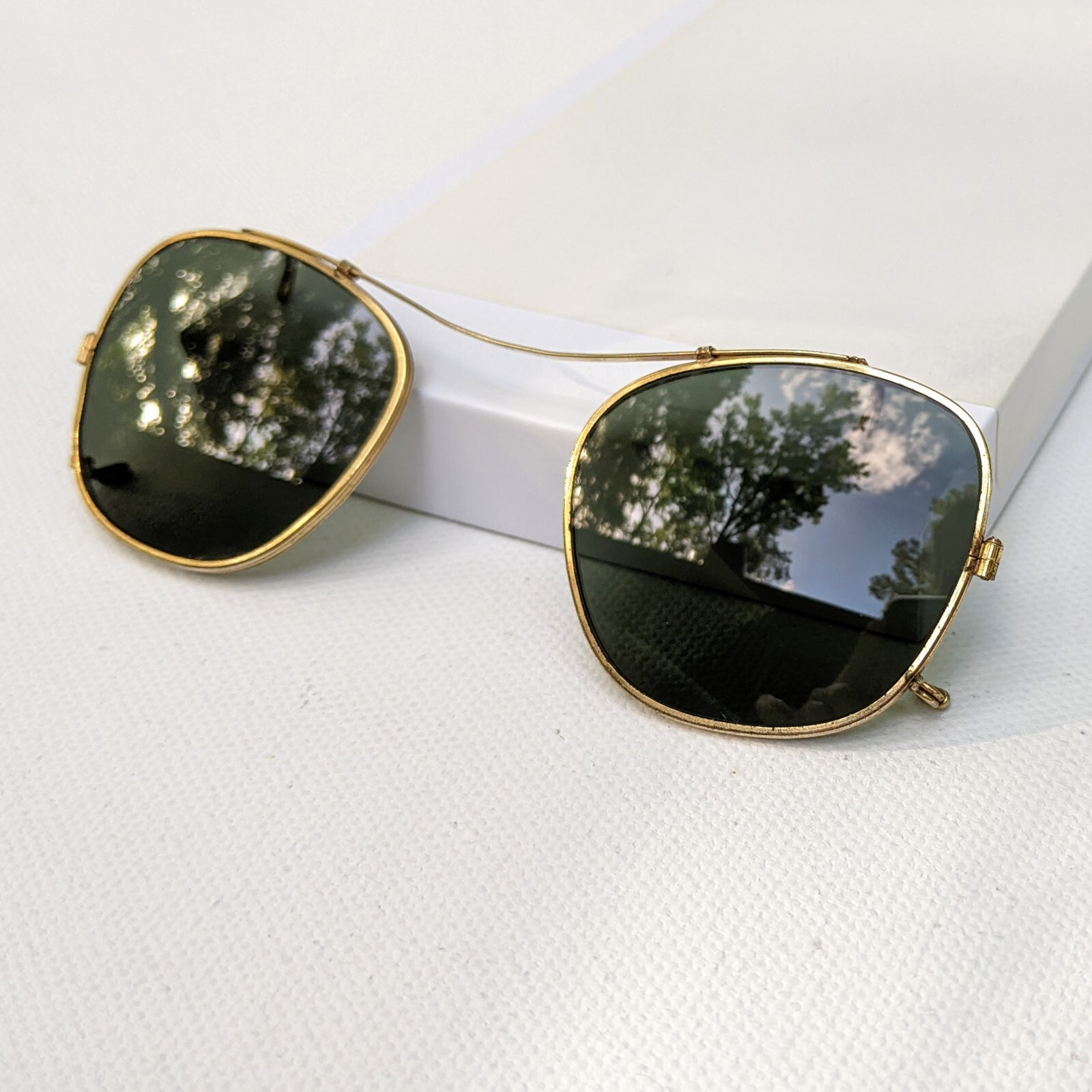 Vintage Ray-Ban Bosch and Lomb Clip on Sunglasses Green Lenses B L 44 With Case