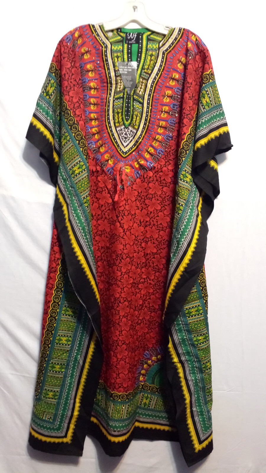 Women African Drawstring Maxi Kaftan Dress Dashiki Boho Hippie Red Free Size