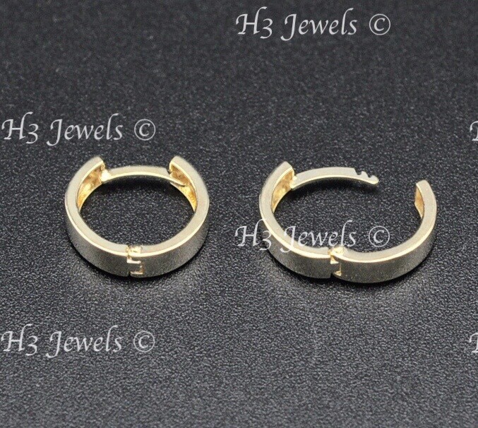 14k solid yellow gold plain square tube kids huggie earring 1.40gram 12mm 12976