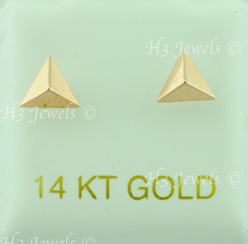 как выглядит 14k Solid Rose gold kids Stud Triangle earring earrings Screw back 6511 фото