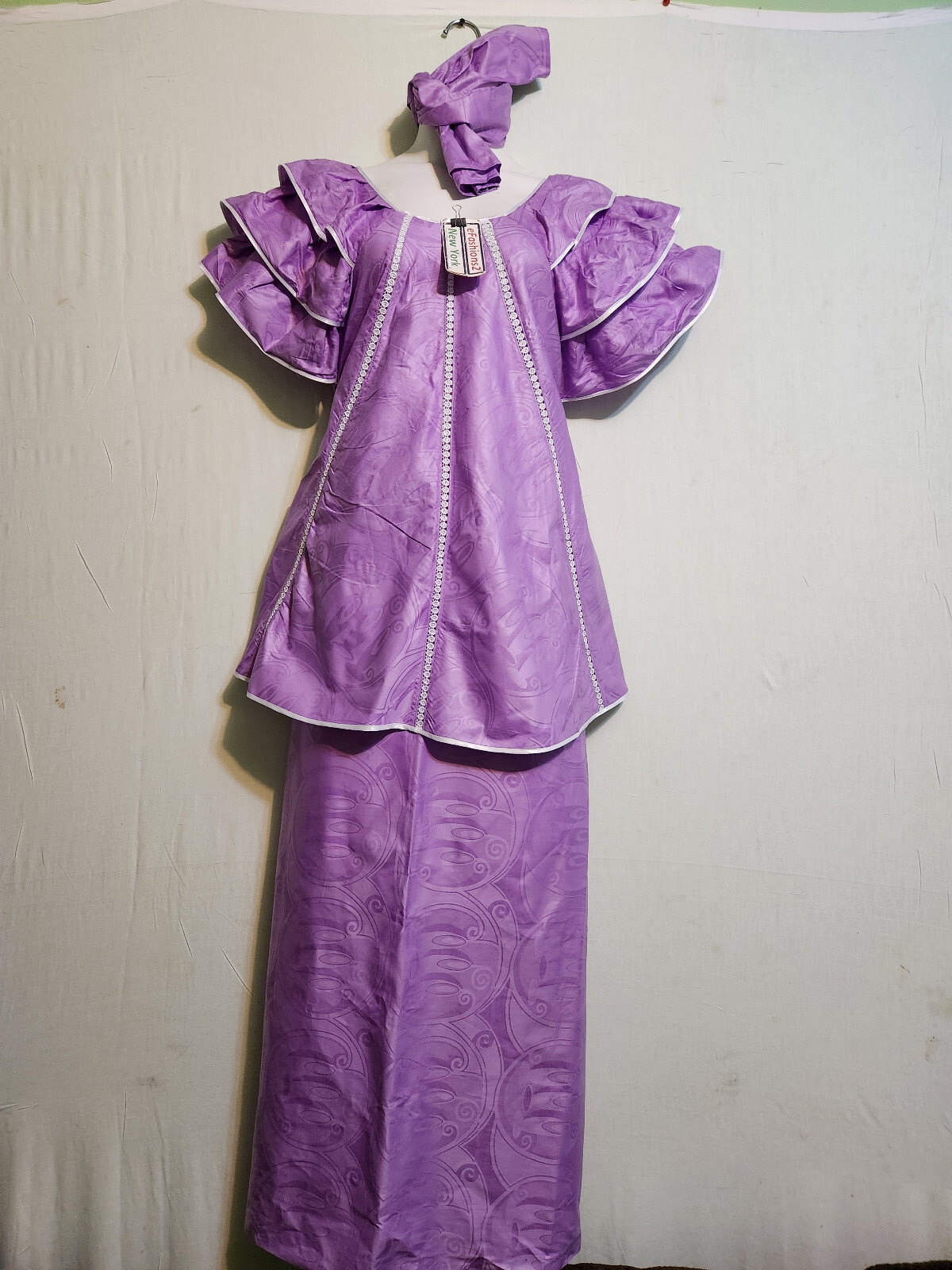 как выглядит Women Clothing African Brocade Print Cotton 3Pcs Skirt Suit Free Size 50" around фото