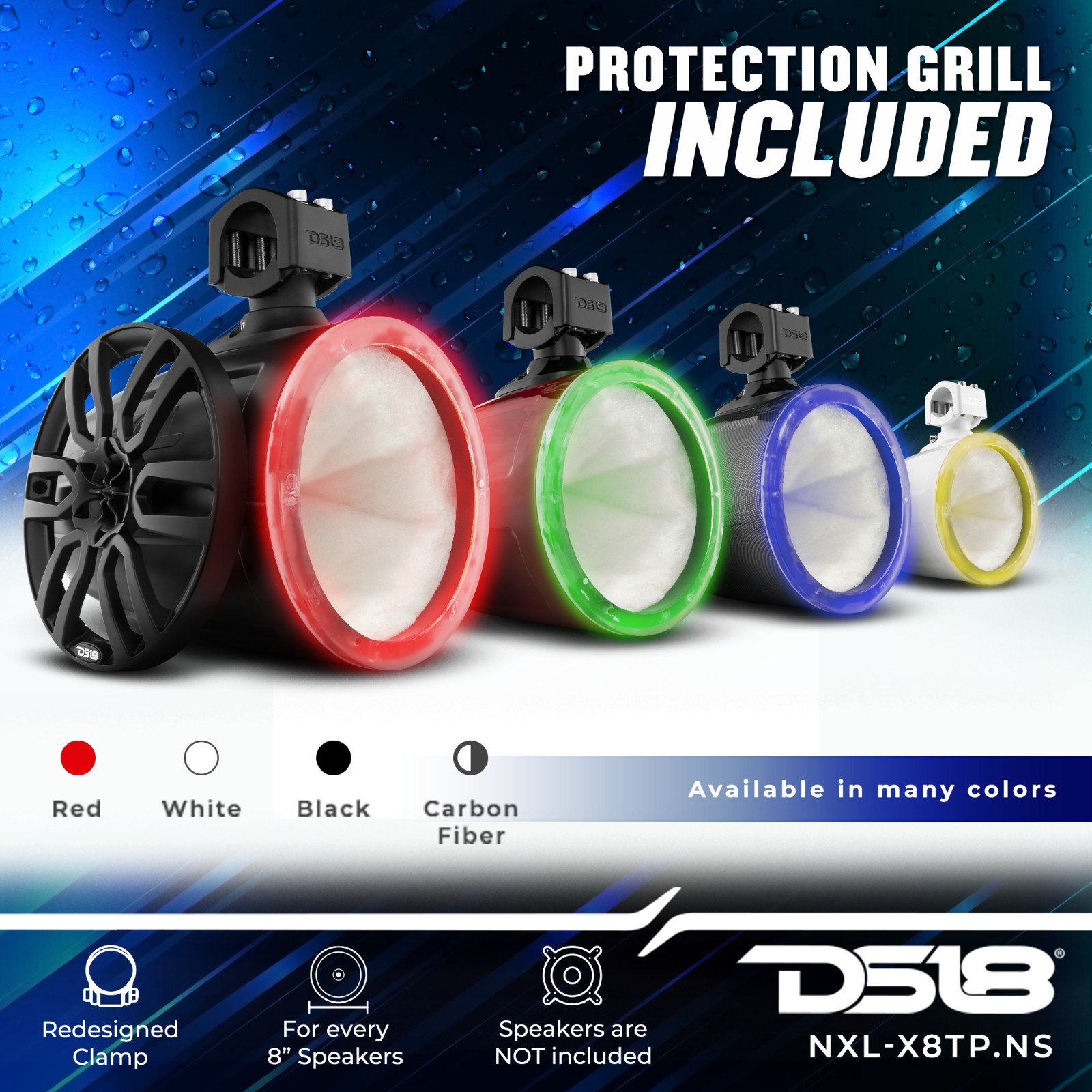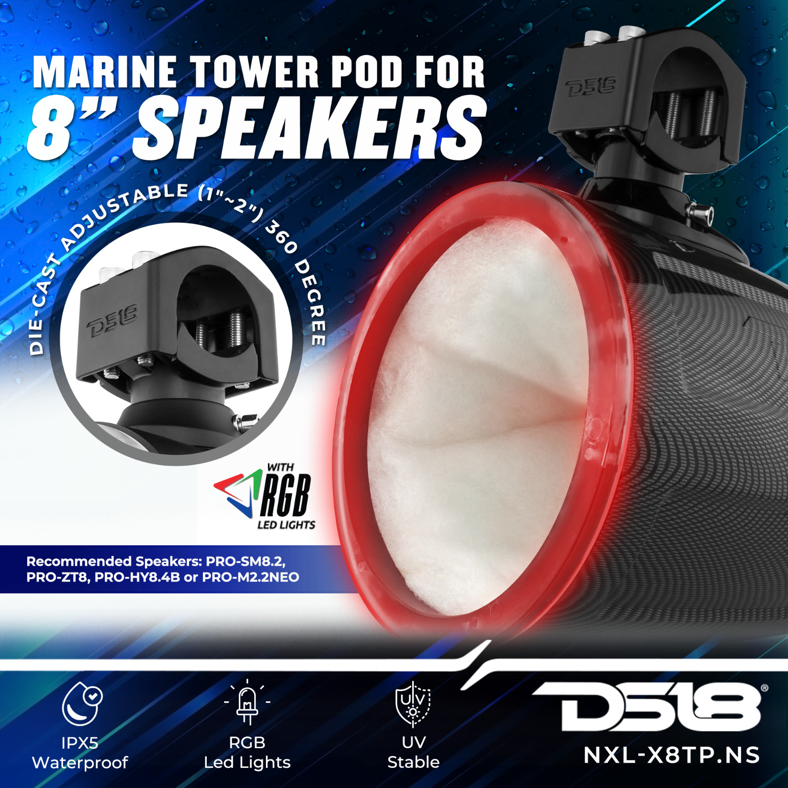 как выглядит DS18 NXL-X8TP/WH.NS 8" Marine Tower Pod with Integrated RGB LED Lights - Black фото