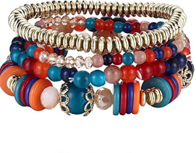 4 PC Handmade Bohemian Beaded Stackable Stretch Bracelet Set New Free Ship 5243