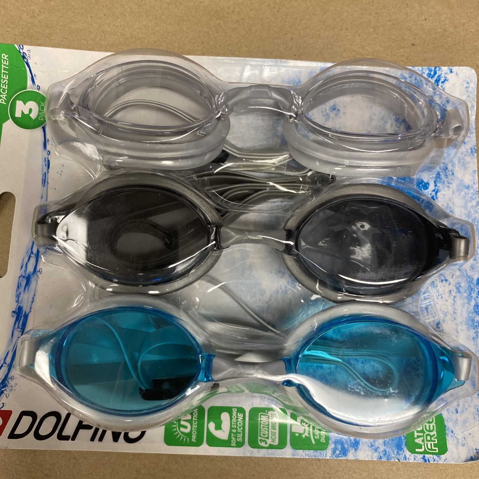 3 pack Dolfino Pacesetter Silicone Swim Goggles sz Adult ages 12 UV Protection