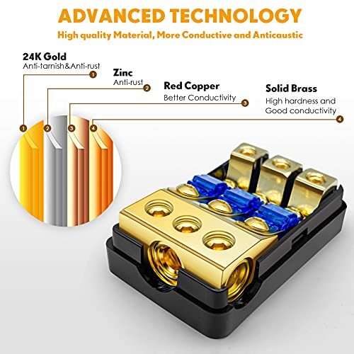 3 Way Mini Anl Fuse Holder Copper 0/2/4 Gauge To 4/6/8 Gauge 60 Amp Fuse Distrib