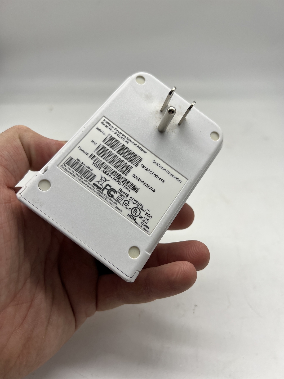 SerComm 200Mbps Powerline Ethernet Adapter Model - IP522CG V2. 1