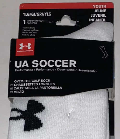 UA Under Armour Team OTC Soccer Socks 1 Pair Youth 1-4 W4-6.5 White w Black Logo