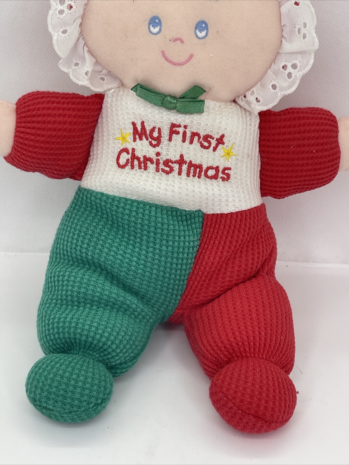 как выглядит Eden My First Christmas Doll 10" Red Green Terry Soft Plush Stuffed Toy фото