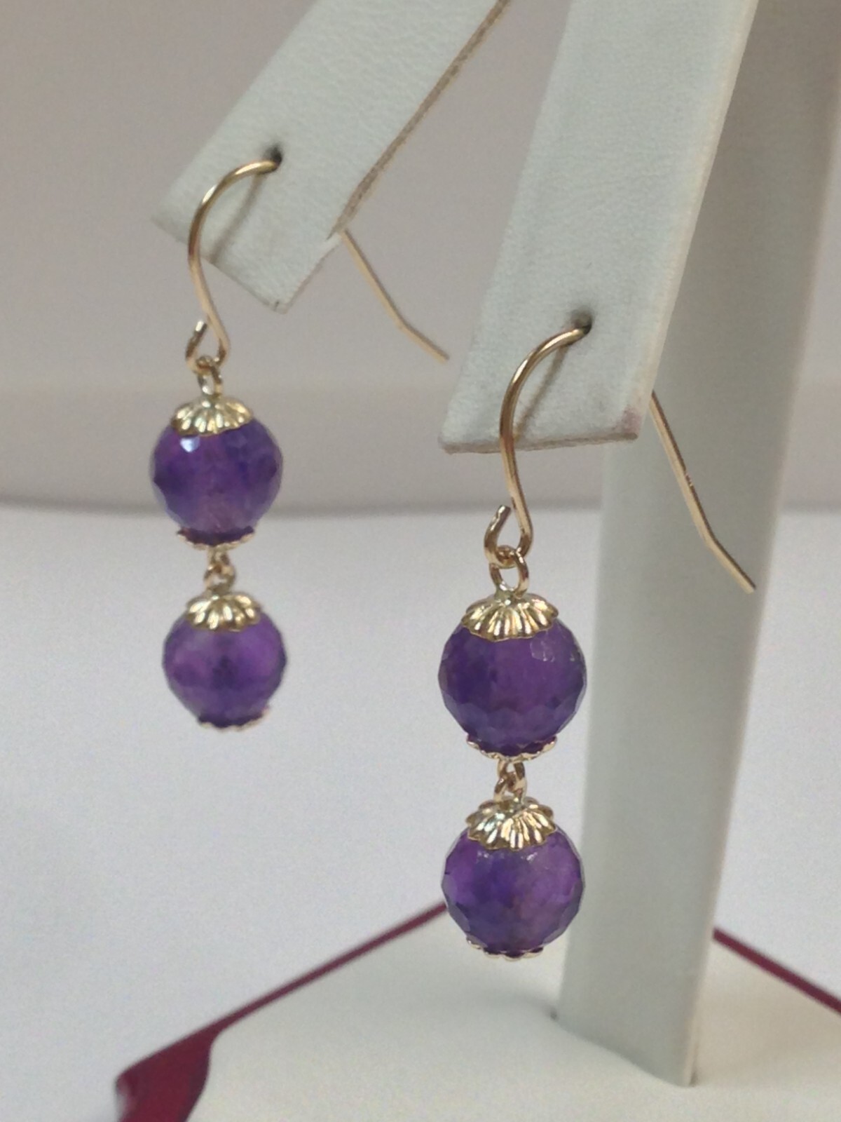 как выглядит Natural Amethyst Earrings in Solid 14kt Yellow Gold фото