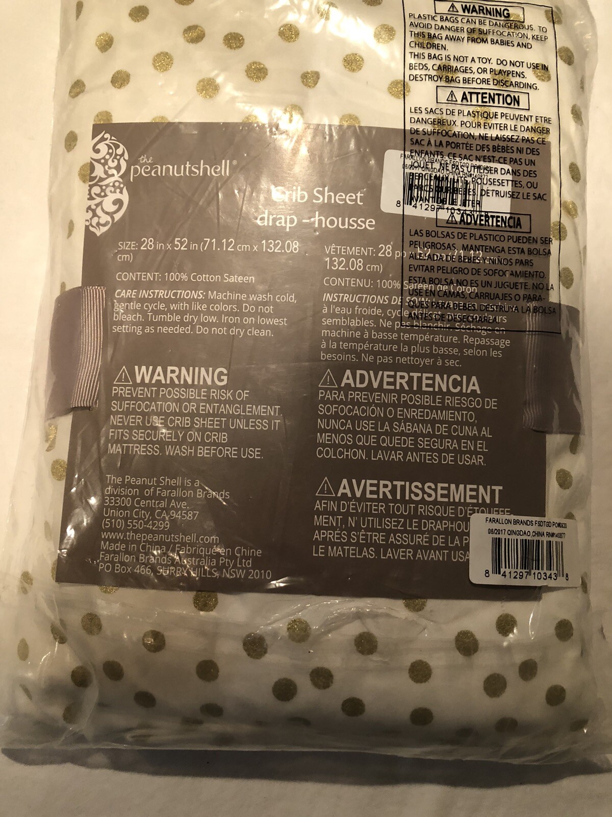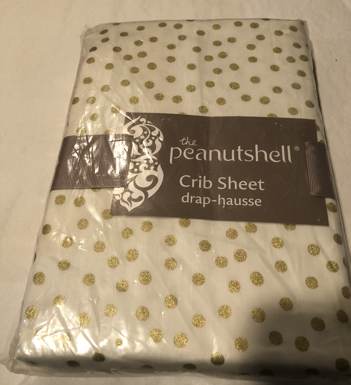 Peanut Shell Fitted Crib Sheet - White - Gild Polka Dots NWT 100 Cotton