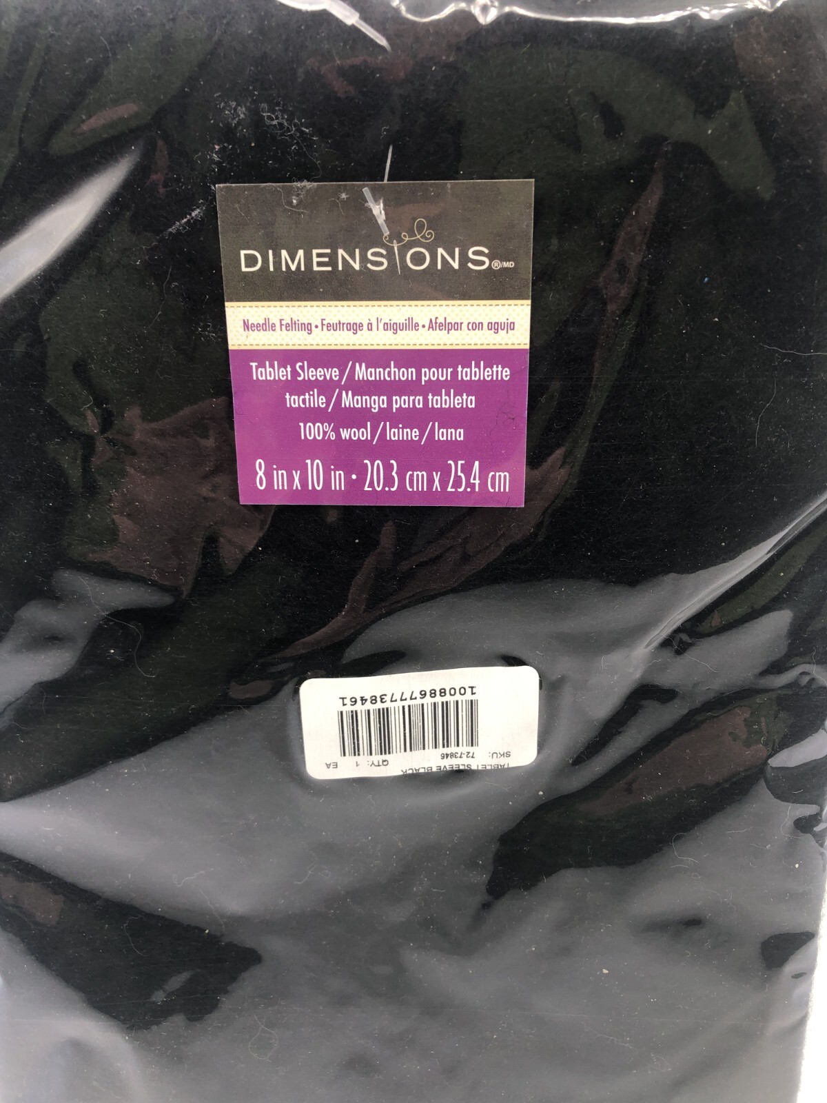 Dimensions Needle Felting Tablet Sleeves Black 8 x 10 in Felt. 100 Wool. NWT