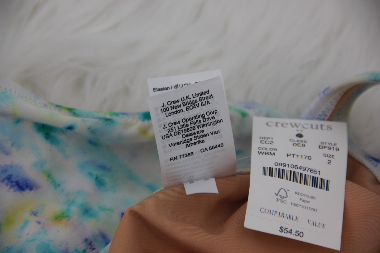NWT Girls Crewcuts White Blue Yellow Tie Dye 2 Swim Suit One Piece Cut Out 1078