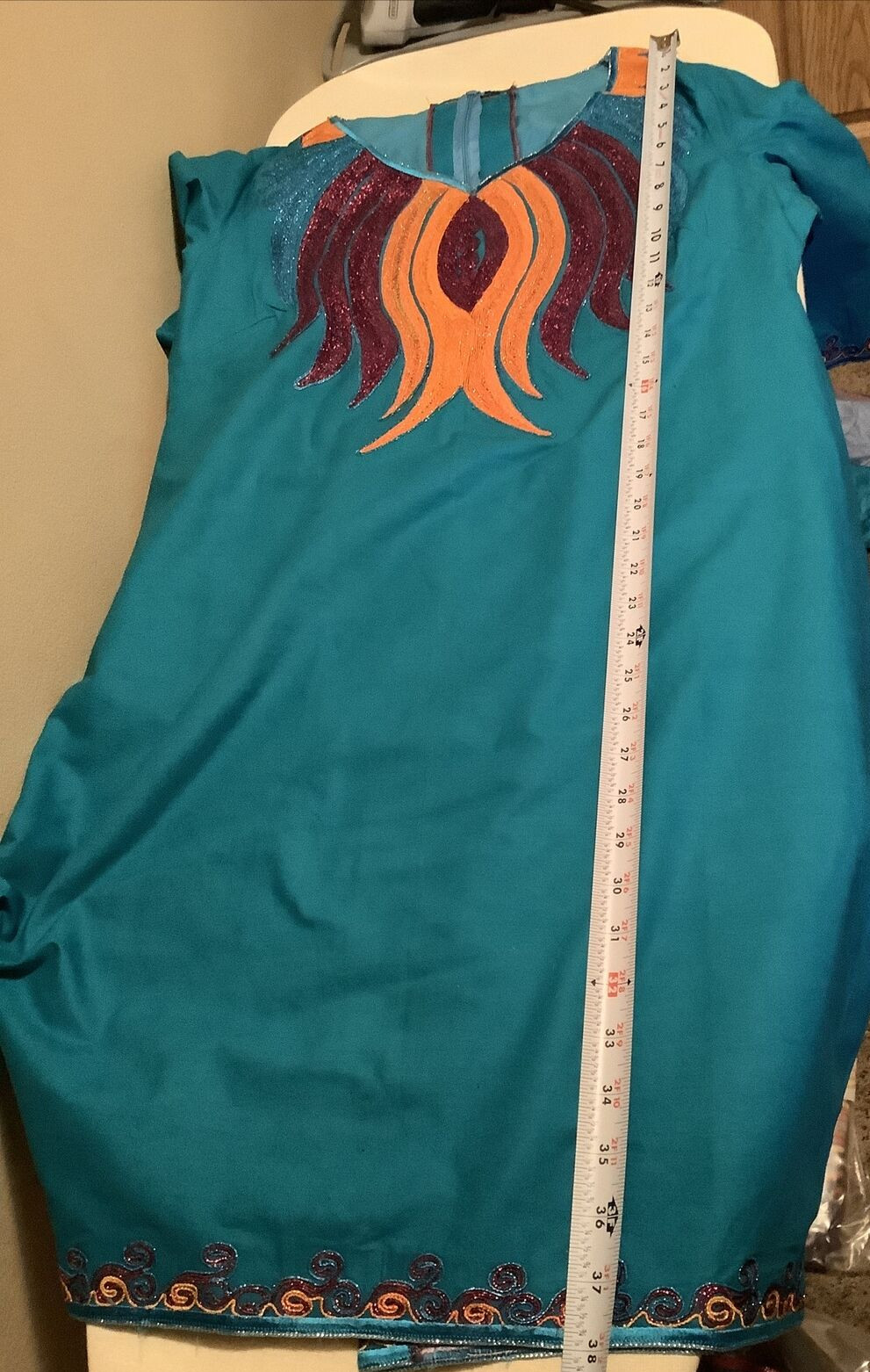 как выглядит African ladies blue cotton blend embroidered dress loose west Africa M фото