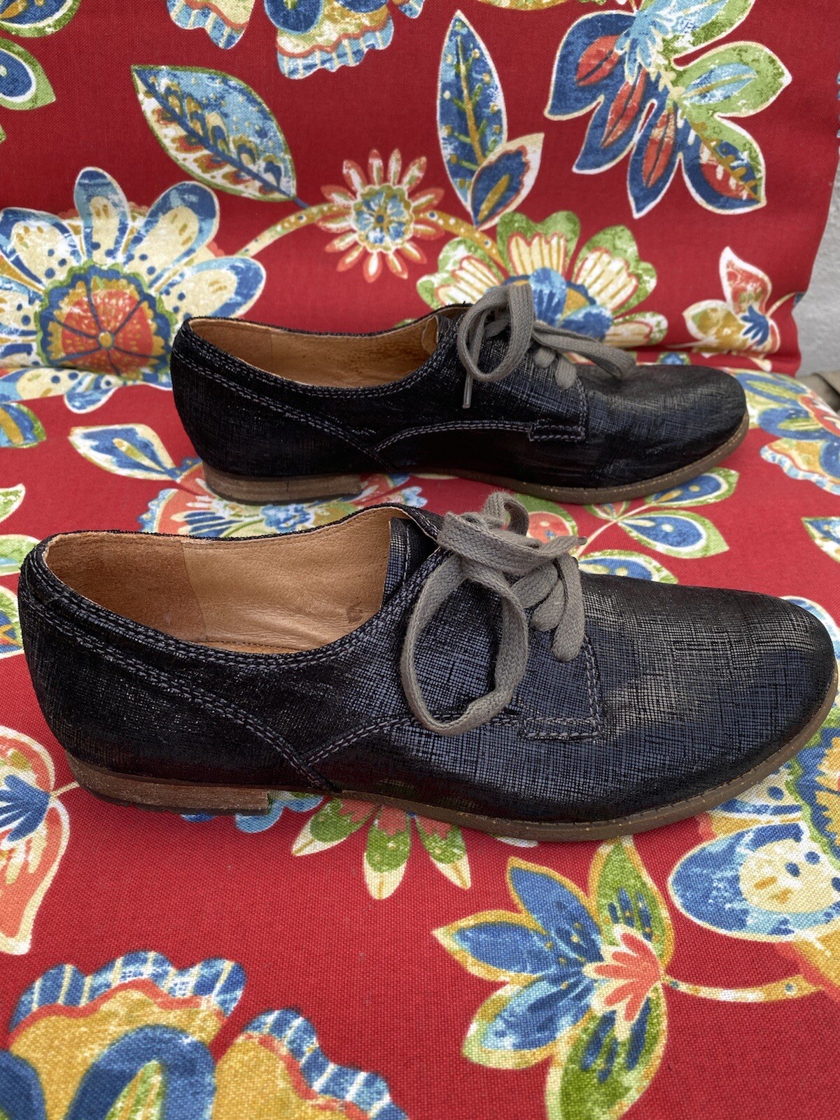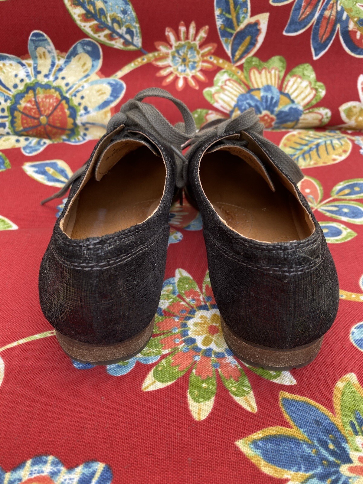 Naya Tiber Women's Black Shimmer Leather Oxfords Flats Lace Sz 7M US 38 EUR