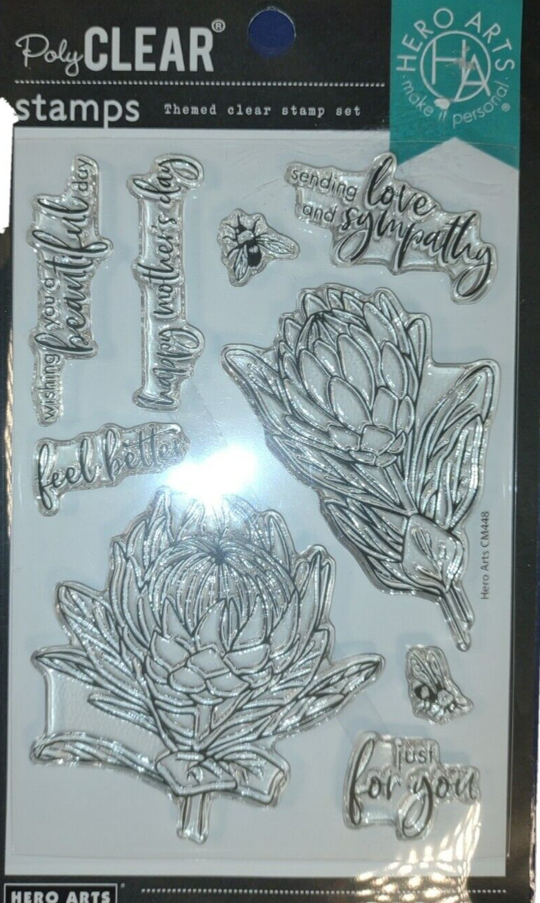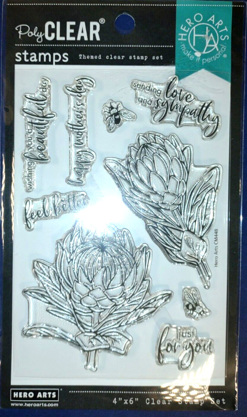 Hero Arts Poly Clear Stamp Set Florals and Sentiments New in Package 9 Stamps
