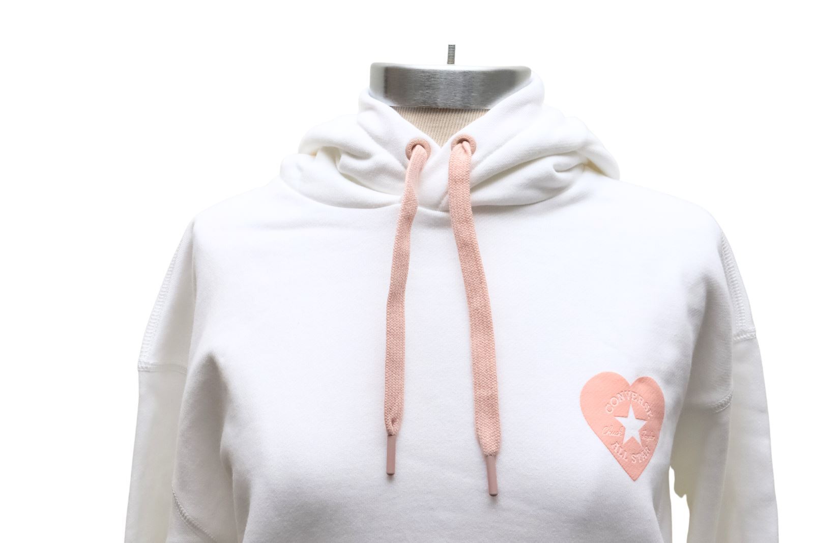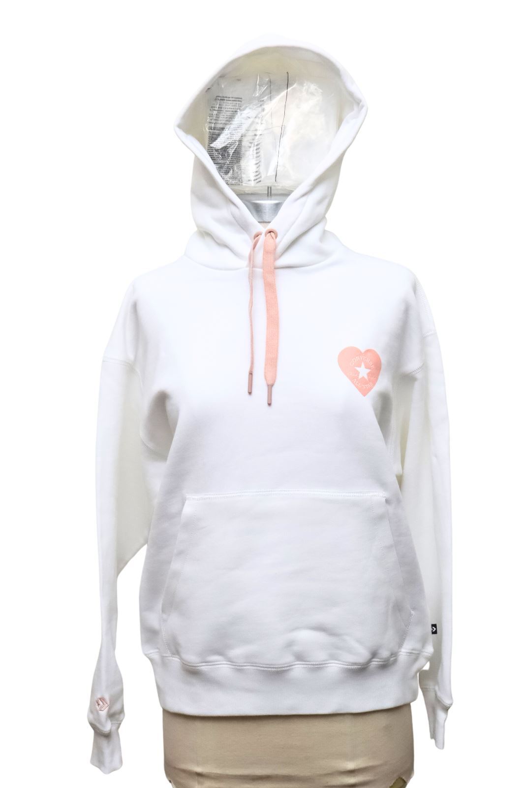 как выглядит Converse x Valentine Pink Heart White Cotton Kango Pocket Drawstring Hoodie XS фото